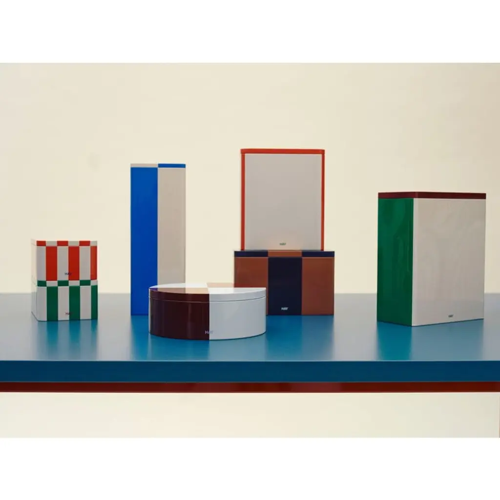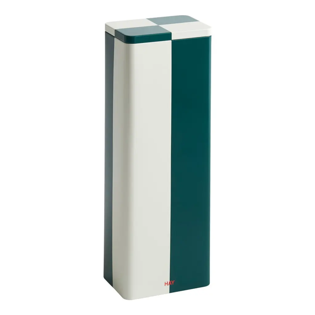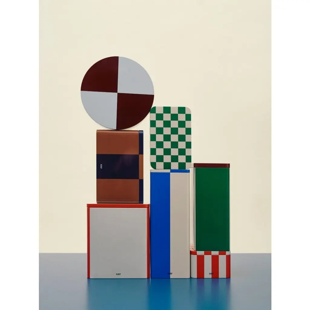 HAY's Tin container brings a nice contemporary twist to classic tin boxes with graphic patterns and stylish designs that are perfect for modern homes. The slim tin box is ideal for storing everything from treats in the kitchen to craft supplies in the kids' room or pens and sticky notes in the office. Try mixing and matching different-sized and colored Tin containers together for a playful look, or opt for a coordinated set to add a touch of harmony to your home.