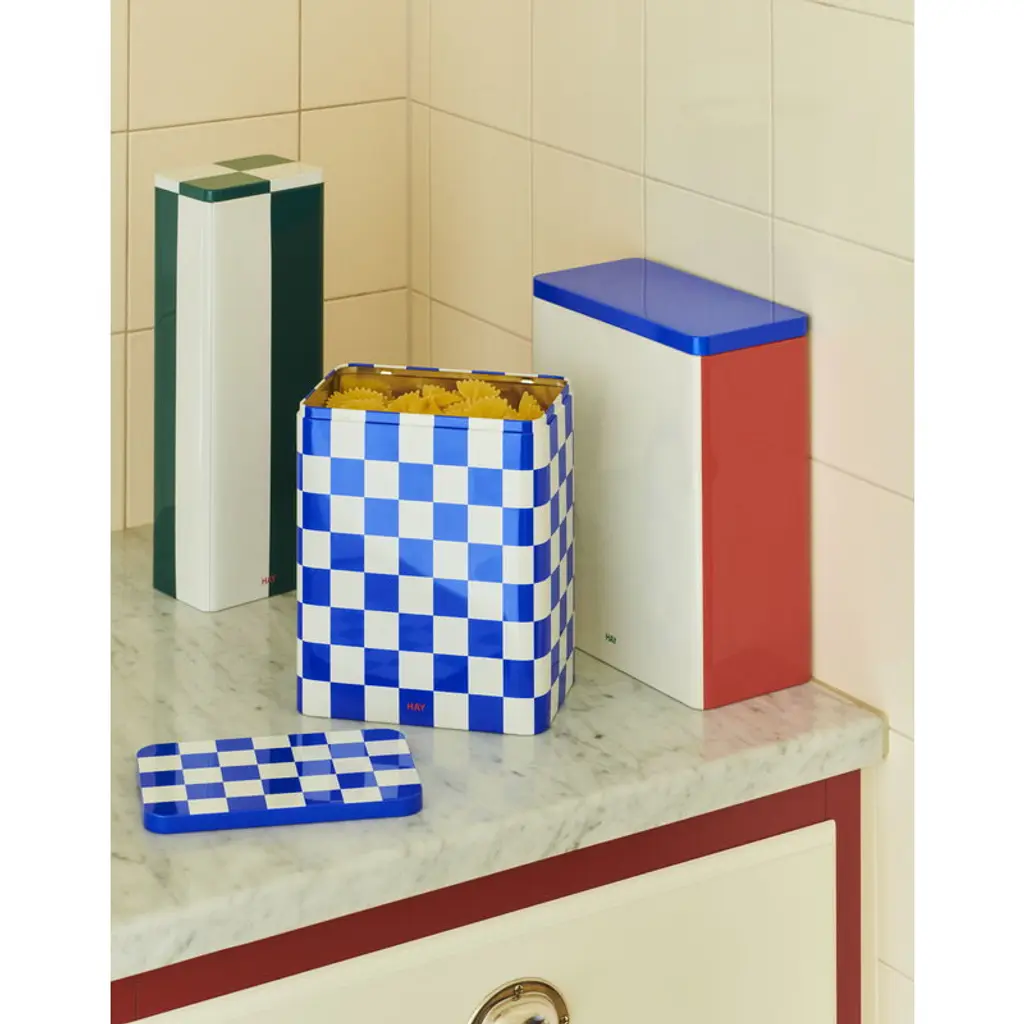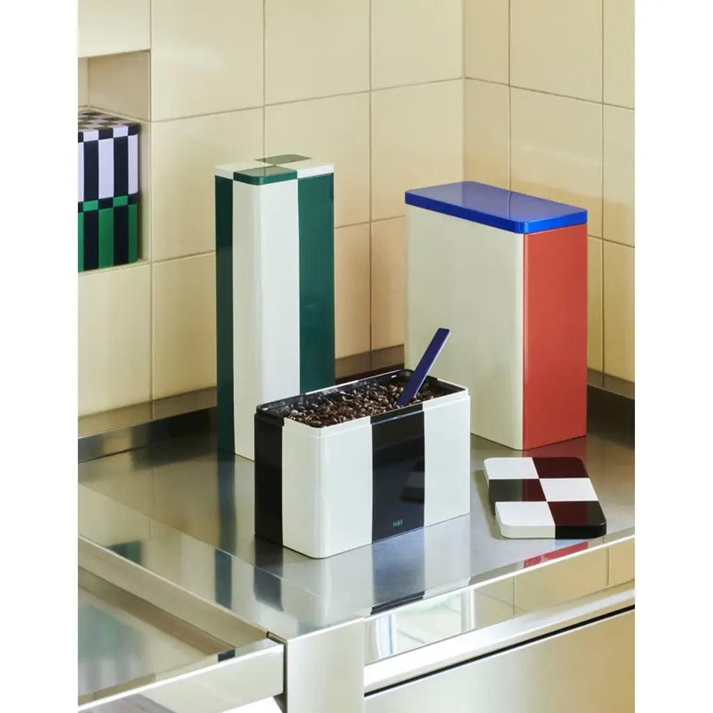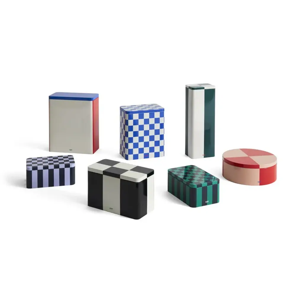 HAY's Tin container brings a nice contemporary twist to classic tin boxes with graphic patterns and stylish designs that are perfect for modern homes. The slim tin box is ideal for storing everything from treats in the kitchen to craft supplies in the kids' room or pens and sticky notes in the office. Try mixing and matching different-sized and colored Tin containers together for a playful look, or opt for a coordinated set to add a touch of harmony to your home.