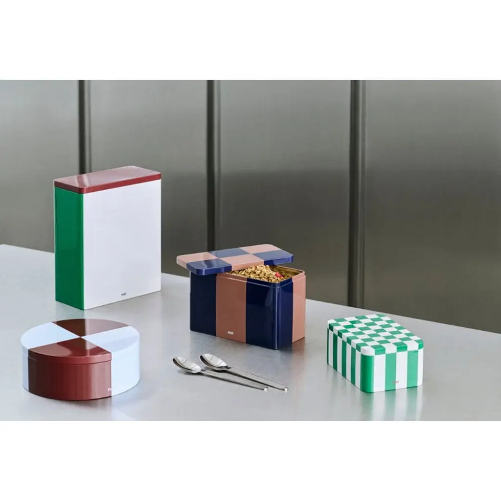 HAY's Tin container brings a nice contemporary twist to classic tin boxes with graphic patterns and stylish designs that are perfect for modern homes. The large tin box is ideal for storing everything from treats in the kitchen to craft supplies in the kids' room or pens and sticky notes in the office. Try mixing and matching different-sized and colored Tin containers together for a playful look, or opt for a coordinated set to add a touch of harmony to your home.