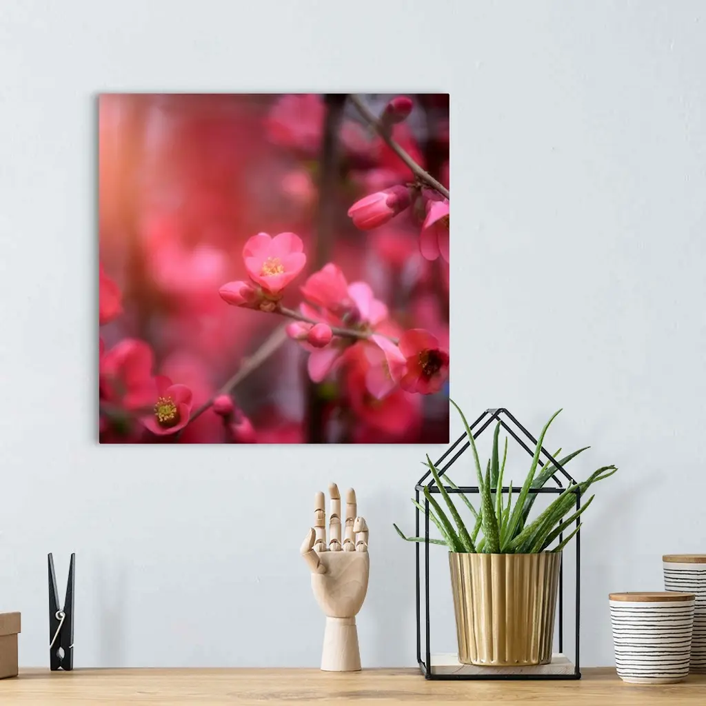 Pretty little pink flowers in spring with a blurred background.