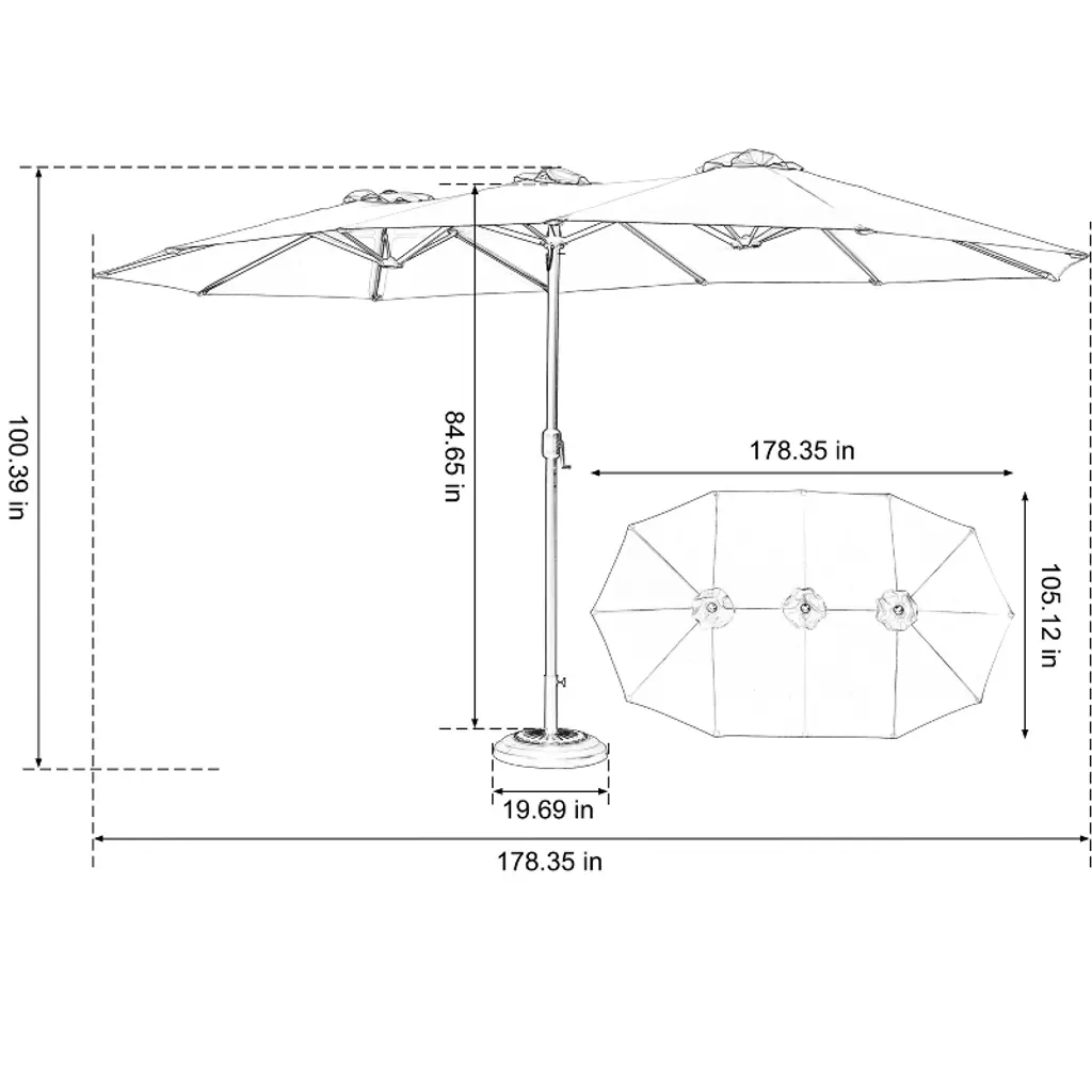 Enjoy more shade, more comfort, and more outdoor time with the Patio Umbrella. Designed with a super-wide rectangular canopy, this market umbrella provides ample coverage¡ªperfect for large outdoor dining sets, backyard gatherings, garden lounges, or poolside relaxation. Constructed from 12 reinforced steel ribs and a durable powder-coated steel frame, this umbrella offers exceptional strength and weather resistance. The double-sided canopy design not only increases the shaded area but also brings a unique visual element to your patio or yard. Made with high-quality polyester fabric, the canopy offers excellent UV protection and helps resist fading from sun exposure. The convenient hand crank mechanism allows for easy and smooth opening and closing, making it user-friendly even for children or the elderly. Please note that this product does not include a base and is recommended for use in mild weather conditions. Avoid using during heavy wind, rain, or snow to extend the product's service life. Whether you¡¯re enjoying a sunny lunch outdoors or hosting a poolside party, this umbrella provides the ideal blend of style, shade, and comfort.