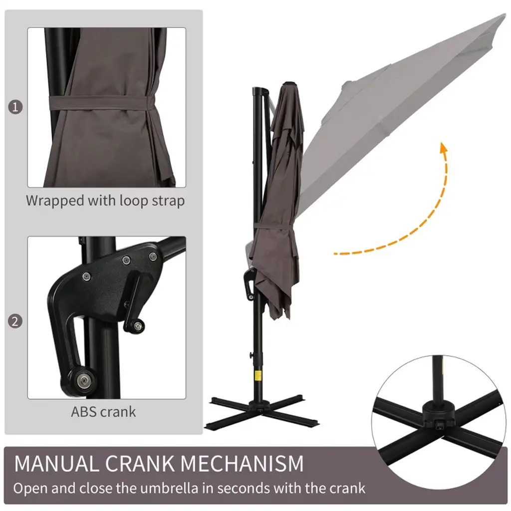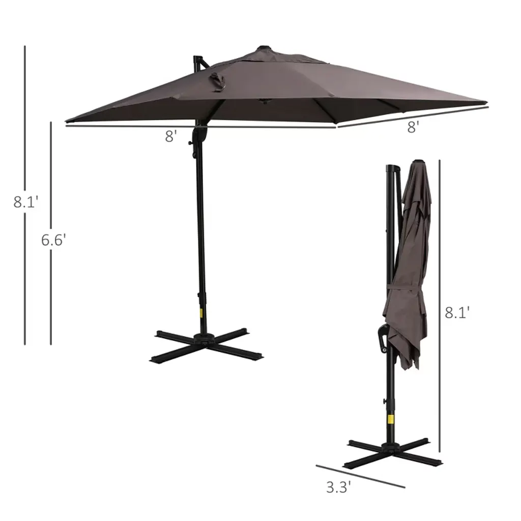 Tiramisubest 8Ft Cantilever Square Offset Aluminum Patio Umbrella With 360¡ã Rotation, 3-position Tilt, Crank & Cross Base For Garden, Brown