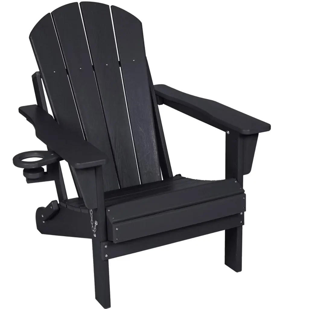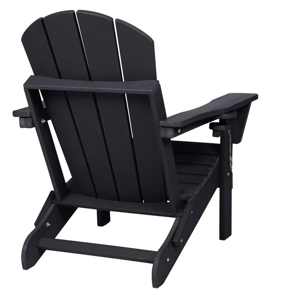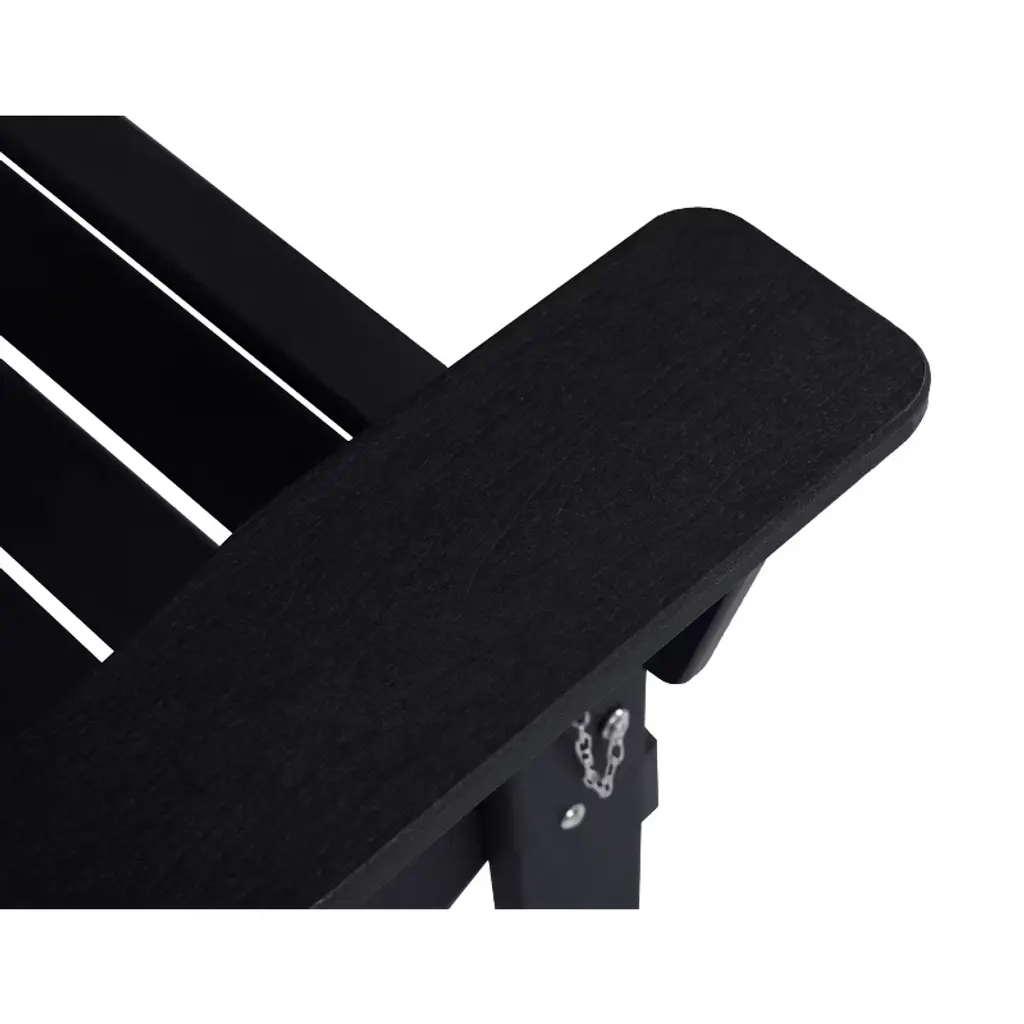 Tiramisubest Folding Chair With Side Table, 3-piece Adirondack Chair Set With Wood Texture, Black(includes 2 Chairs And 1 Table)