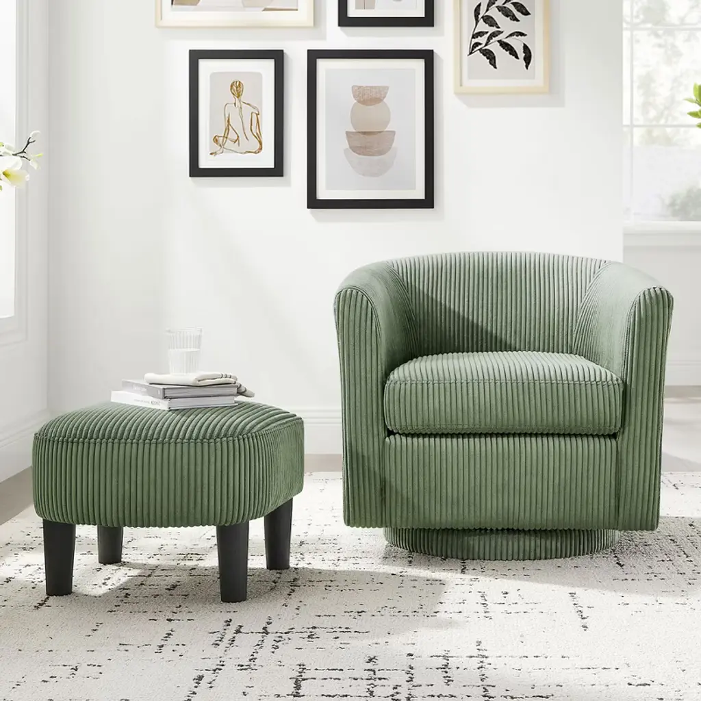 Discover the Swivel Accent Chair 360¡ãComfy Recliner Corduroy Arm Chair Single Sofa with Ottoman for Living Room Bedroom, a versatile addition to your home. Features include: - Fabric construction - 26.38L ¡Á 24.8W dimensions - 55.0lb sturdy build