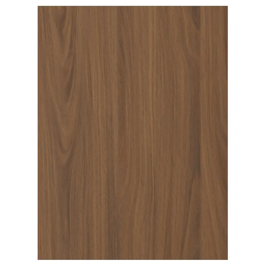 TISTORP Door - brown walnut effect 15x20 ". Slab front with walnut effect foil offers a genuine wood expression enhanced by the vertical grain pattern with a subtle structure. Foil gives a smooth and practical surface that is resistant to moisture and staining and is easy to clean.