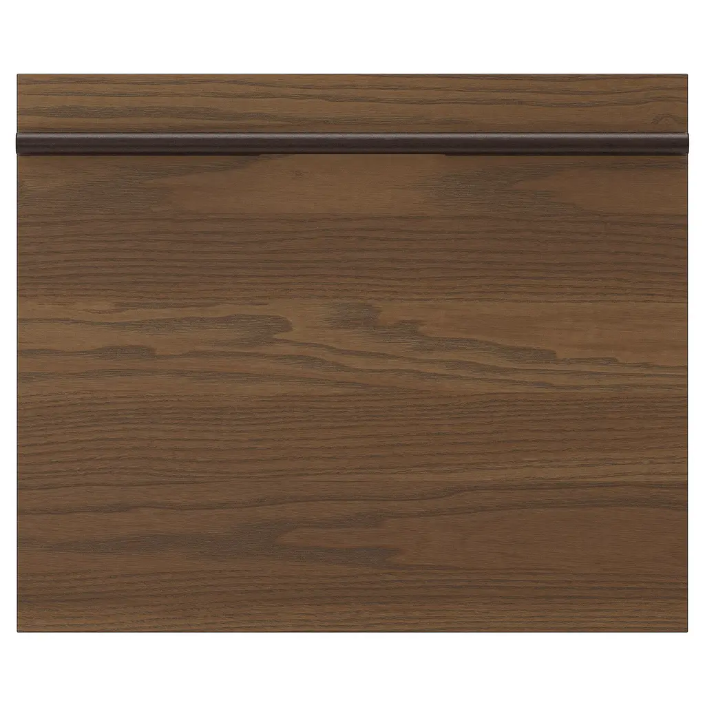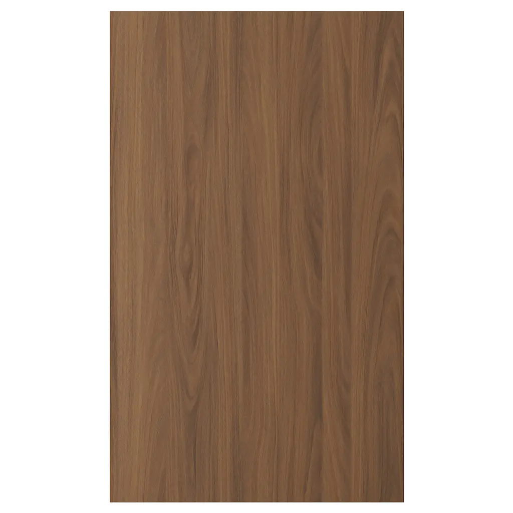 TISTORP Door - brown walnut effect 24x40 ". Slab front with walnut effect foil offers a genuine wood expression enhanced by the vertical grain pattern with a subtle structure. Foil gives a smooth and practical surface that is resistant to moisture and staining and is easy to clean.