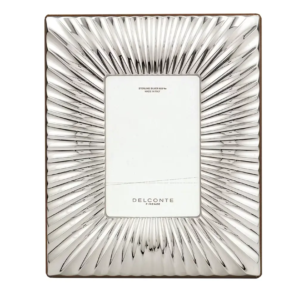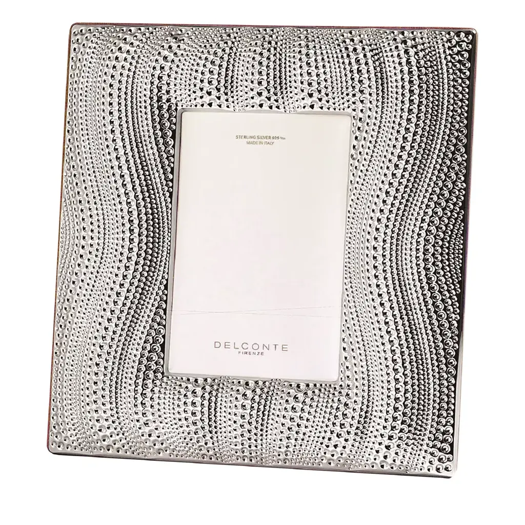 Elegant waves give striking textural quality to this glaring sterling silver 925 frame, their harmonious edges allowing light to reflect creating a beautiful halo around memorable moments frozen in time. Having its back upholstered in natural leather, the piece fits photos measuring 13x18cm with its 6cm-wide sides. Please consult the Concierge for pricing of the variants fitting 9x9- and 10x15-cm photographs.