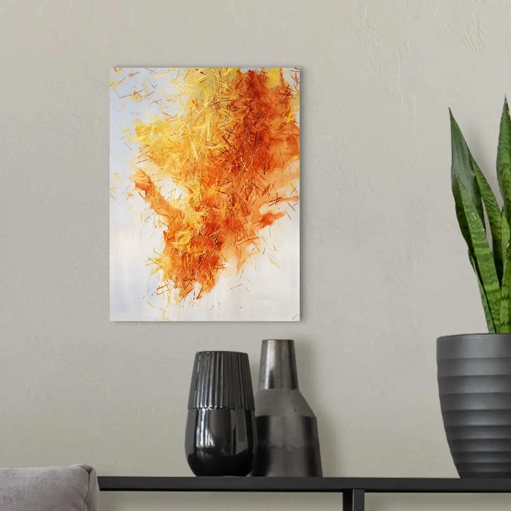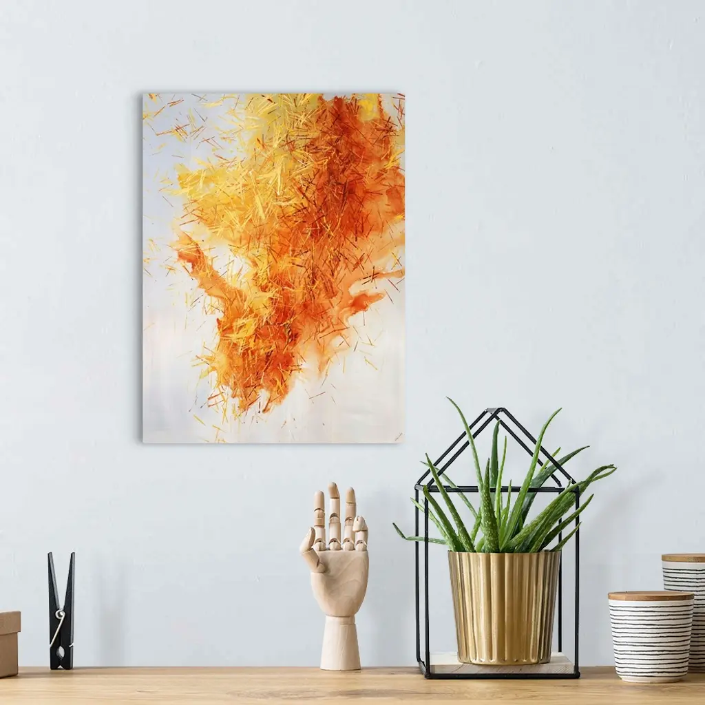Abstract art of a large cluster of pine needles in golden warm tones on a light neutral background.