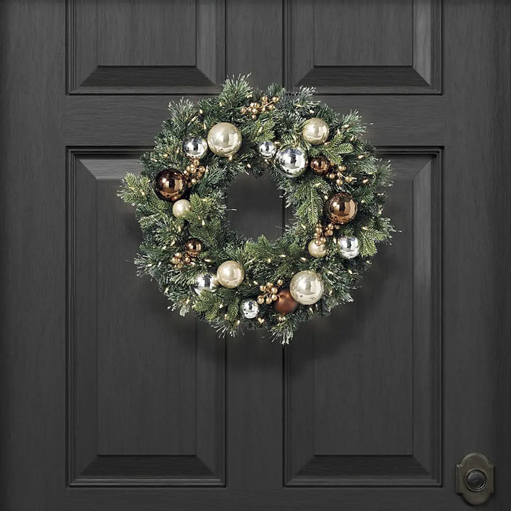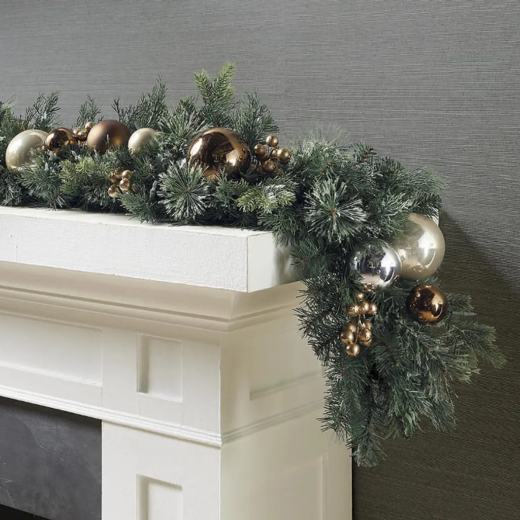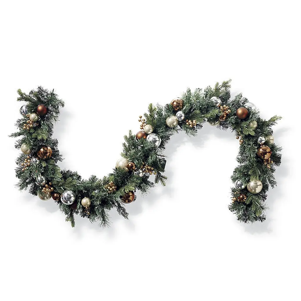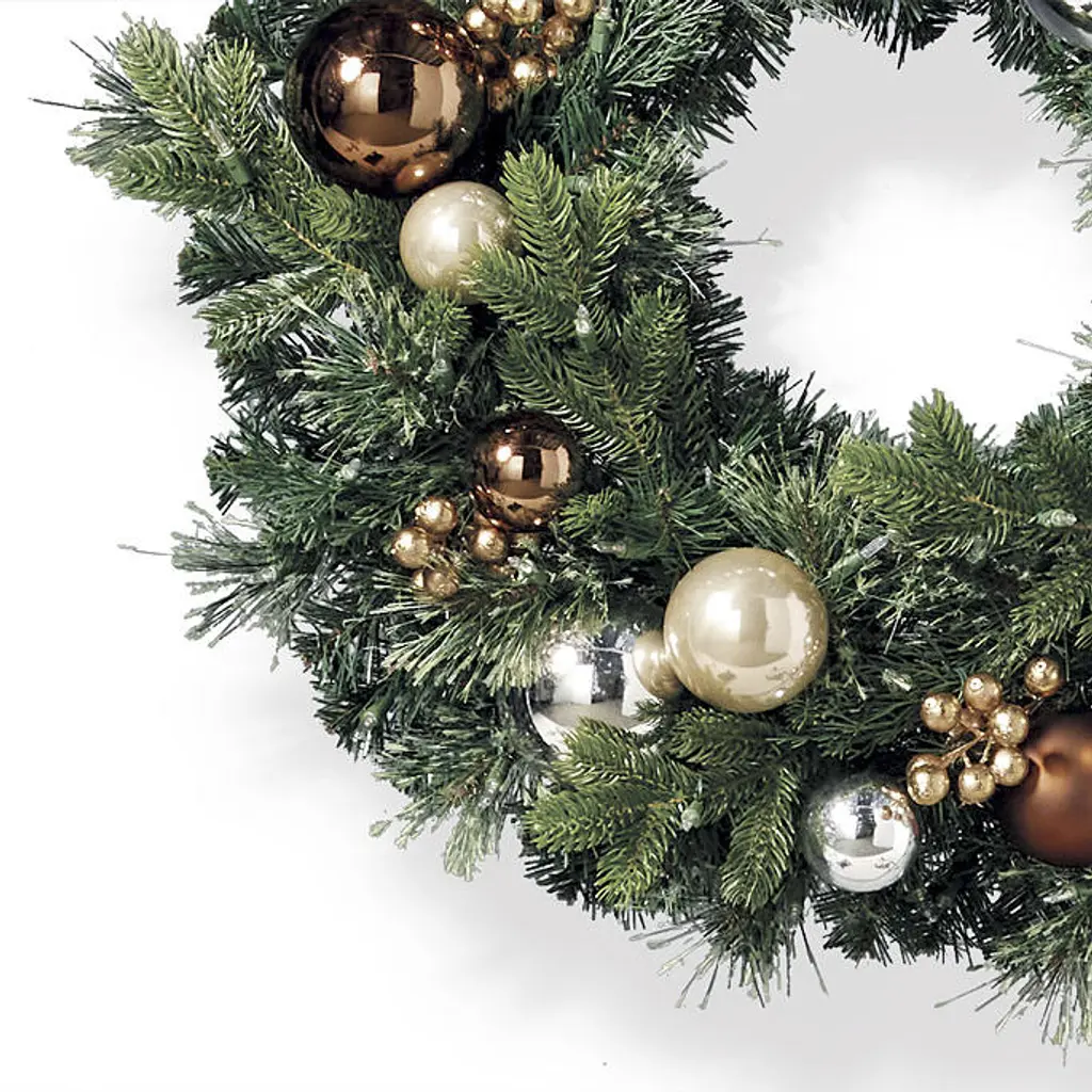 This greenery features various lifelike foliage accented with durable glass ornaments for a festive base to any holiday decor. Prelit with 200 warm white LED lights, this wreath and garland add dazzling style to your home. Lifelike foliage and shatterproof ornaments Wreath has 100 warm white LED lights, 198 tips Garland has 200 warm white LED lights, 390 tips Use the built-in timer option to automatically turn on the lights for eight hours and off for 16 hours Requires three D batteries (not included) Three-wire system provides even lighting exposure and reduces fading UV treated to prevent fading Fluff and shape greenery after unpacking To maximize the life of your greenery, we recommend a limit of three months of outdoor exposure per year. Wipe clean with a soft, dry cloth or duster WARNING: This product can expose you to chemicals including lead, which is known to the State of California to cause cancer. For more information go to www.P65Warnings.ca.gov For indoor or outdoor use Imported A Frontgate exclusive. At Frontgate, our primary focus is quality. We guarantee that every product we sell will stand up to the supreme test – our customers' satisfaction. To learn more about our policies, visit our Shipping & Processing, Returns & Exchanges and Warranty & Price Guarantee pages. This greenery features various lifelike foliage accented with durable glass ornaments for a festive base to any holiday decor. Prelit with 200 warm white LED lights, this wreath and garland add dazzling style to your home. Lifelike foliage and shatterproof ornaments Wreath has 100 warm white LED lights, 198 tips Garland has 200 warm white LED lights, 390 tips Use the built-in timer option to automatically turn on the lights for eight hours and off for 16 hours Requires three D batteries (not included) Three-wire system provides even lighting exposure and reduces fading UV treated to prevent fading Fluff and shape greenery after unpacking To maximize the life of your greenery, we recommend a limit of three months of outdoor exposure per year. Wipe clean with a soft, dry cloth or duster WARNING: This product can expose you to chemicals including lead, which is known to the State of California to cause cancer. For more information go to www.P65Warnings.ca.gov For indoor or outdoor use Imported A Frontgate exclusive. At Frontgate, our primary focus is quality. We guarantee that every product we sell will stand up to the supreme test – our customers' satisfaction. To learn more about our policies, visit our Shipping & Processing, Returns & Exchanges and Warranty & Price Guarantee pages.