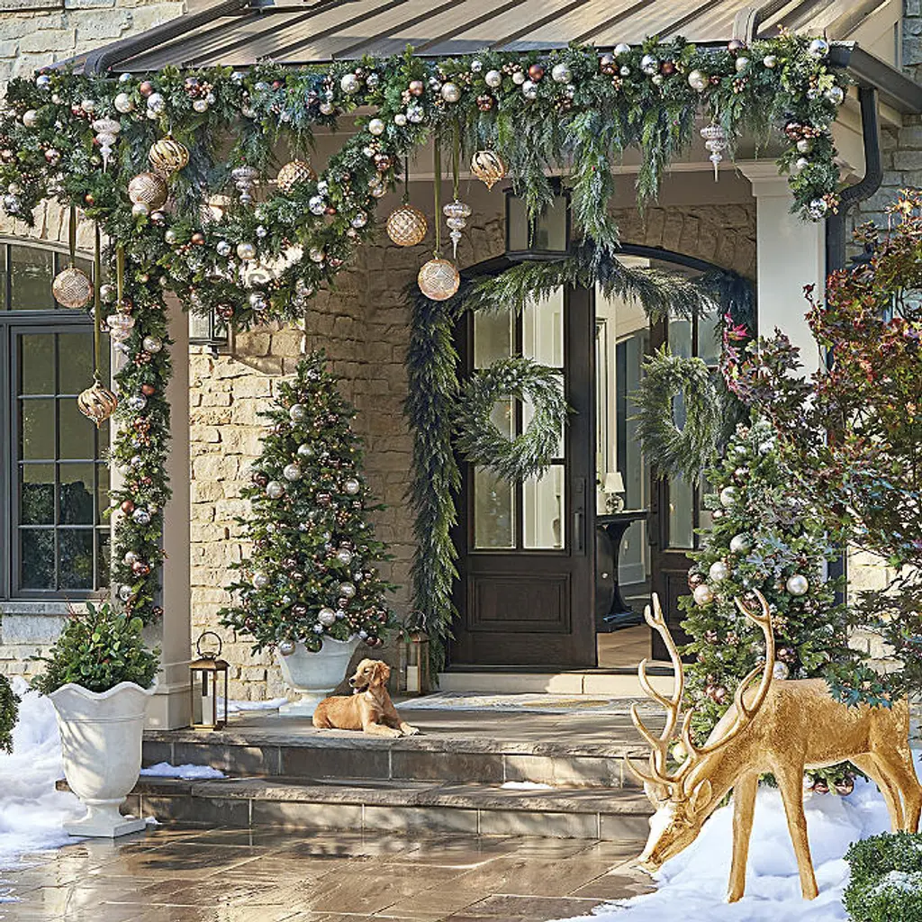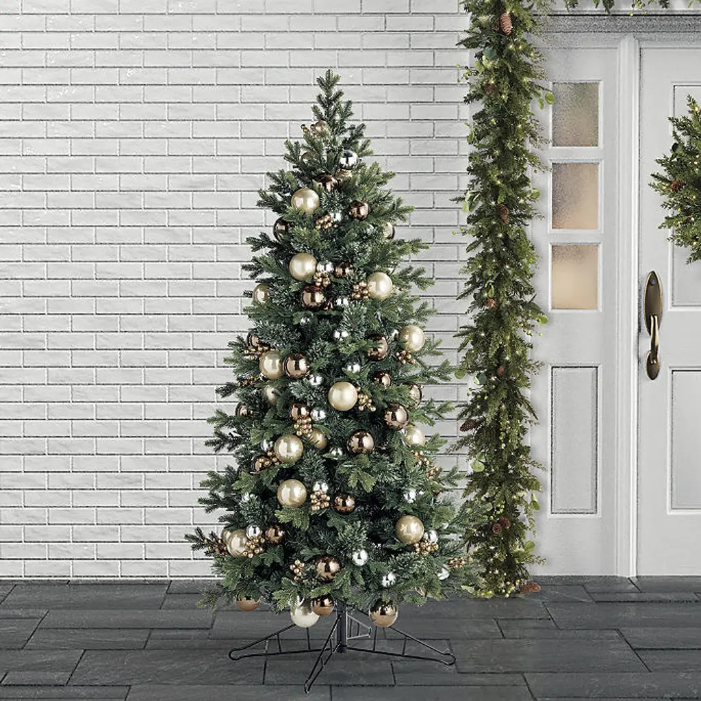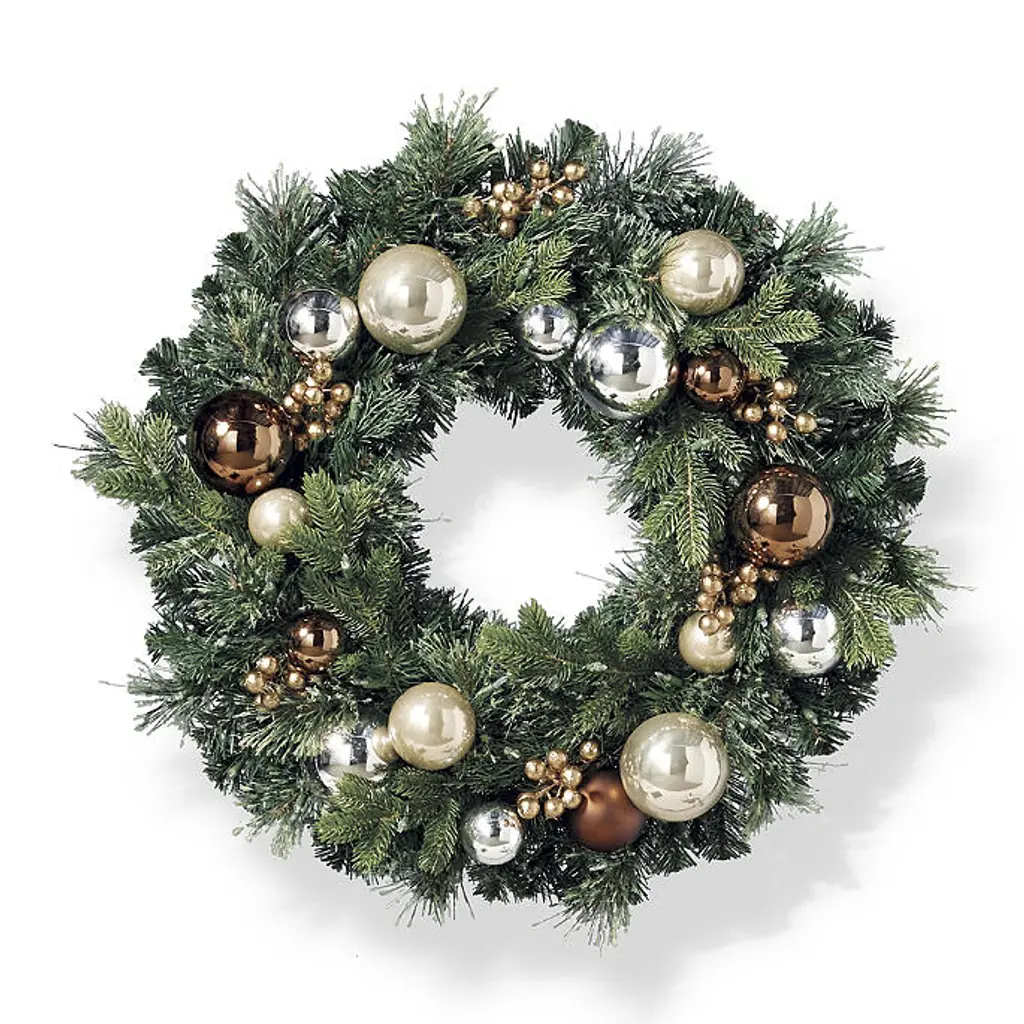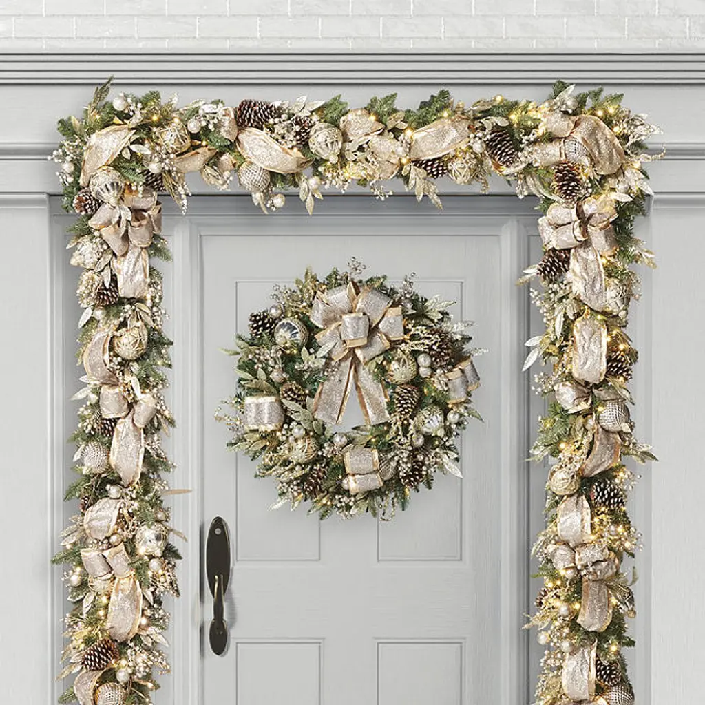 This greenery features various lifelike foliage accented with durable glass ornaments for a festive base to any holiday decor. Prelit with 200 warm white LED lights, this wreath and garland add dazzling style to your home. Lifelike foliage and shatterproof ornaments Wreath has 100 warm white LED lights, 198 tips Garland has 200 warm white LED lights, 390 tips Use the built-in timer option to automatically turn on the lights for eight hours and off for 16 hours Requires three D batteries (not included) Three-wire system provides even lighting exposure and reduces fading UV treated to prevent fading Fluff and shape greenery after unpacking To maximize the life of your greenery, we recommend a limit of three months of outdoor exposure per year. Wipe clean with a soft, dry cloth or duster WARNING: This product can expose you to chemicals including lead, which is known to the State of California to cause cancer. For more information go to www.P65Warnings.ca.gov For indoor or outdoor use Imported A Frontgate exclusive. At Frontgate, our primary focus is quality. We guarantee that every product we sell will stand up to the supreme test – our customers' satisfaction. To learn more about our policies, visit our Shipping & Processing, Returns & Exchanges and Warranty & Price Guarantee pages. This greenery features various lifelike foliage accented with durable glass ornaments for a festive base to any holiday decor. Prelit with 200 warm white LED lights, this wreath and garland add dazzling style to your home. Lifelike foliage and shatterproof ornaments Wreath has 100 warm white LED lights, 198 tips Garland has 200 warm white LED lights, 390 tips Use the built-in timer option to automatically turn on the lights for eight hours and off for 16 hours Requires three D batteries (not included) Three-wire system provides even lighting exposure and reduces fading UV treated to prevent fading Fluff and shape greenery after unpacking To maximize the life of your greenery, we recommend a limit of three months of outdoor exposure per year. Wipe clean with a soft, dry cloth or duster WARNING: This product can expose you to chemicals including lead, which is known to the State of California to cause cancer. For more information go to www.P65Warnings.ca.gov For indoor or outdoor use Imported A Frontgate exclusive. At Frontgate, our primary focus is quality. We guarantee that every product we sell will stand up to the supreme test – our customers' satisfaction. To learn more about our policies, visit our Shipping & Processing, Returns & Exchanges and Warranty & Price Guarantee pages.