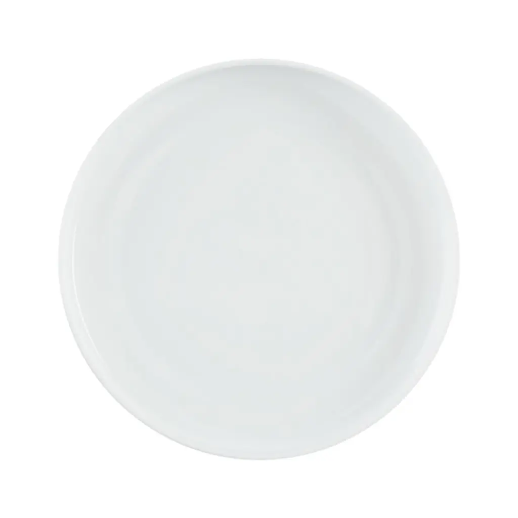 Crisp white porcelain dinnerware trends modern and flexible in modern, rounded coupe shapes perfectly at ease in casual and formal settings. Low curves allow for easy stacking and space-saving storage.