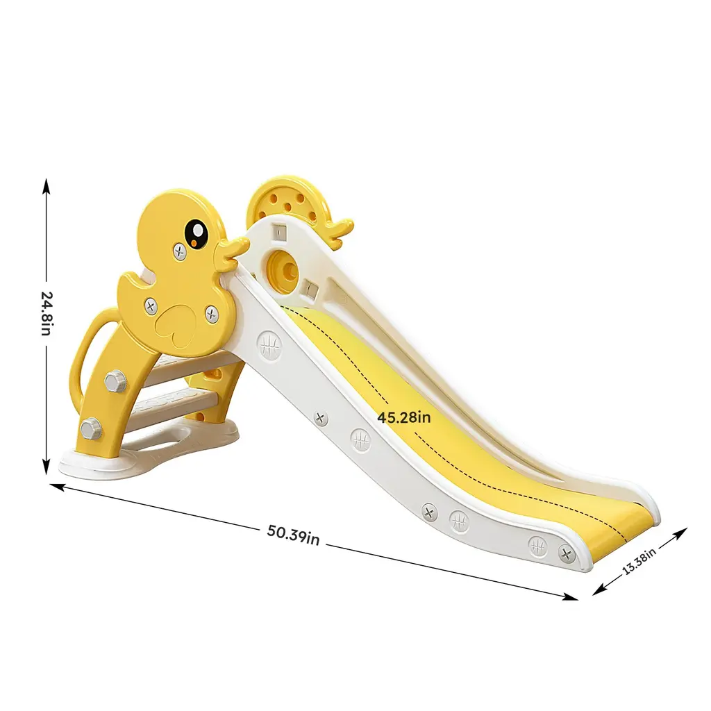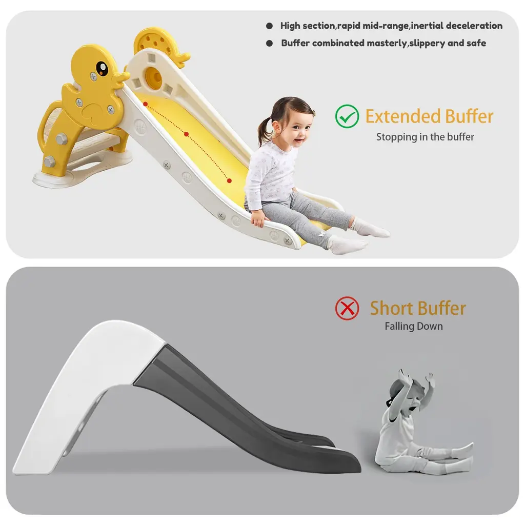 --Safe and anti slip: Suitable for young children, with circular armrests and enclosed pedals. It is safer to move up and down, with an anti slip silicone pad at the bottom to prevent slipping.--Material safety: Use materials that are safe and healthy for children. Preferred environmentally friendly material HDPE, high-density, food grade, safe to use.--Age of use: We recommend that children aged 1-3 use the children's slide with the company of their parents to help their children experience the fun. A children's slide with UP and slide allows children to experience various pleasures.--Easy to install and clean: It only takes 10 minutes to install and use. It is also very easy to clean and has folding function. Suitable for indoor and outdoor use--Gift for young children: Exploring and playing are the nature of children. I hope it can bring happiness to you and your children. If you have any questions, please contact us and we are always ready to help you solve the problem.