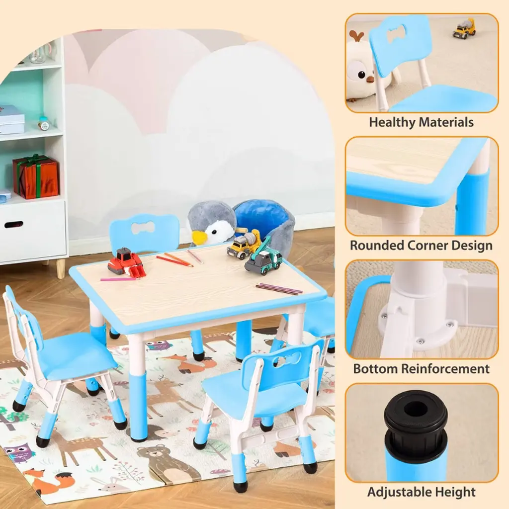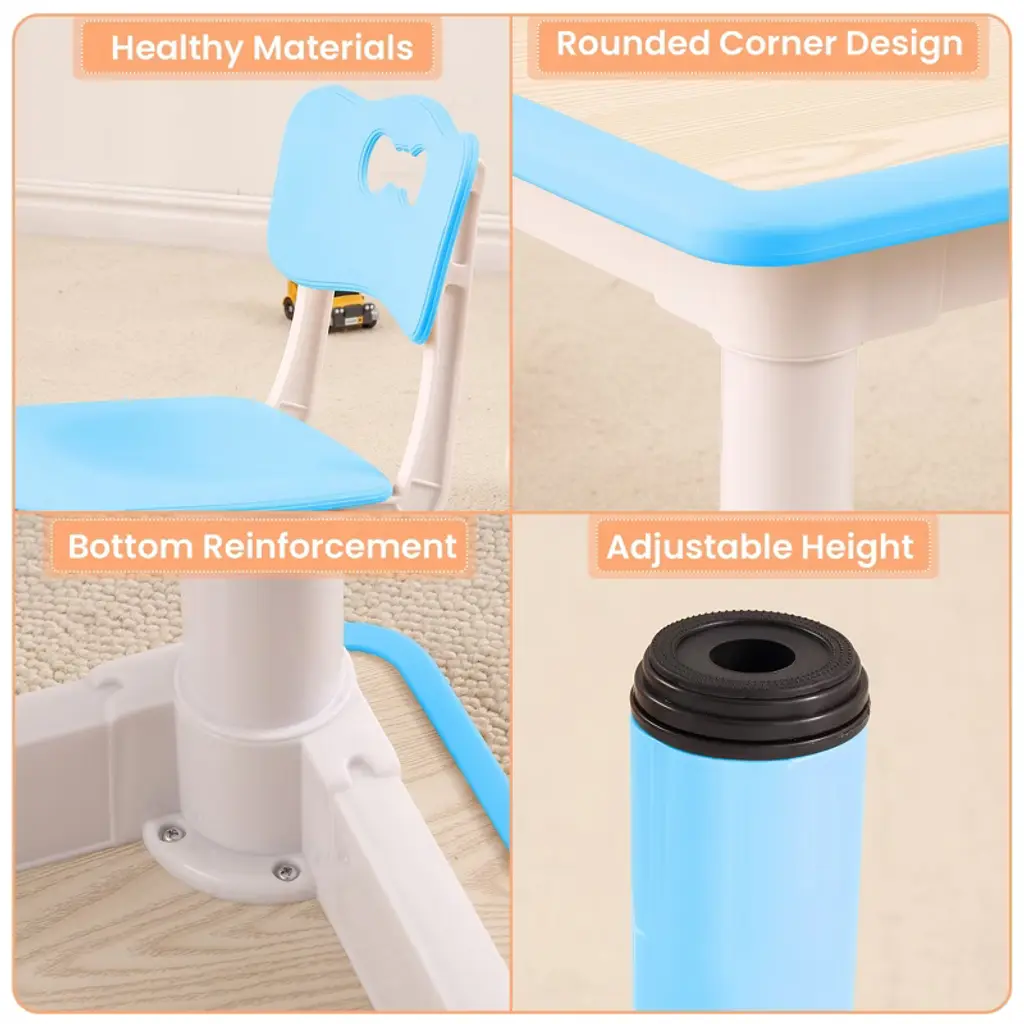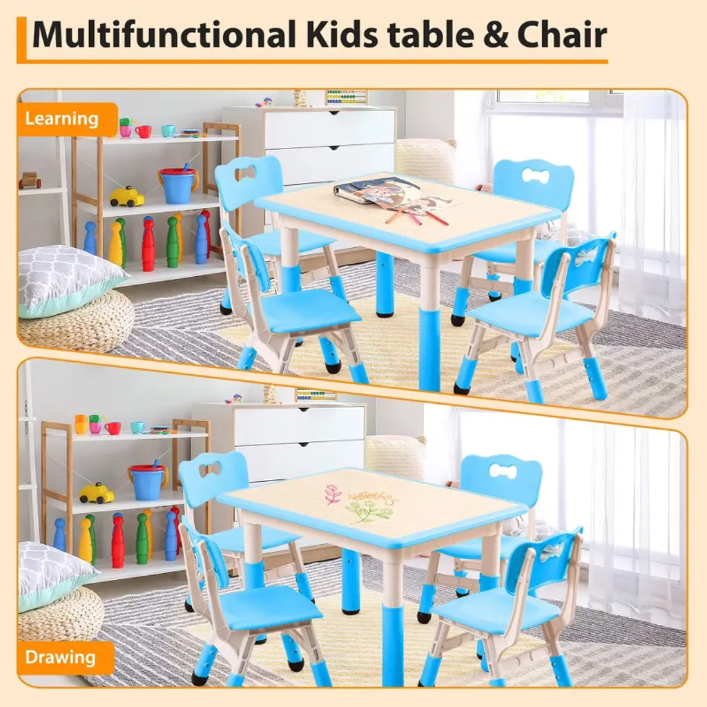 Toddler Table And Chair Set, Height Adjustable Kids Table And Chair Set Of 4, Toddler Table For Reading, Drawing, Eating, For Ages Over 3, Blue