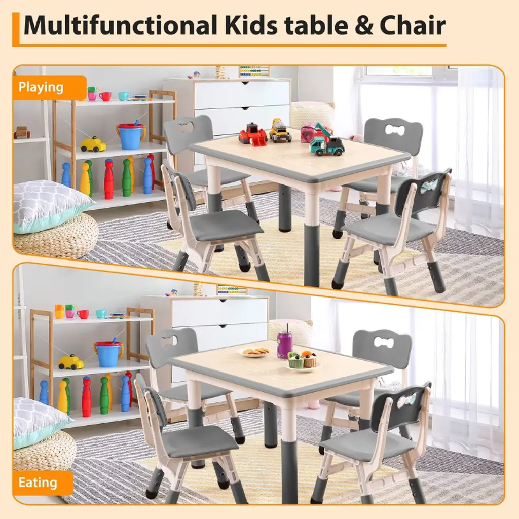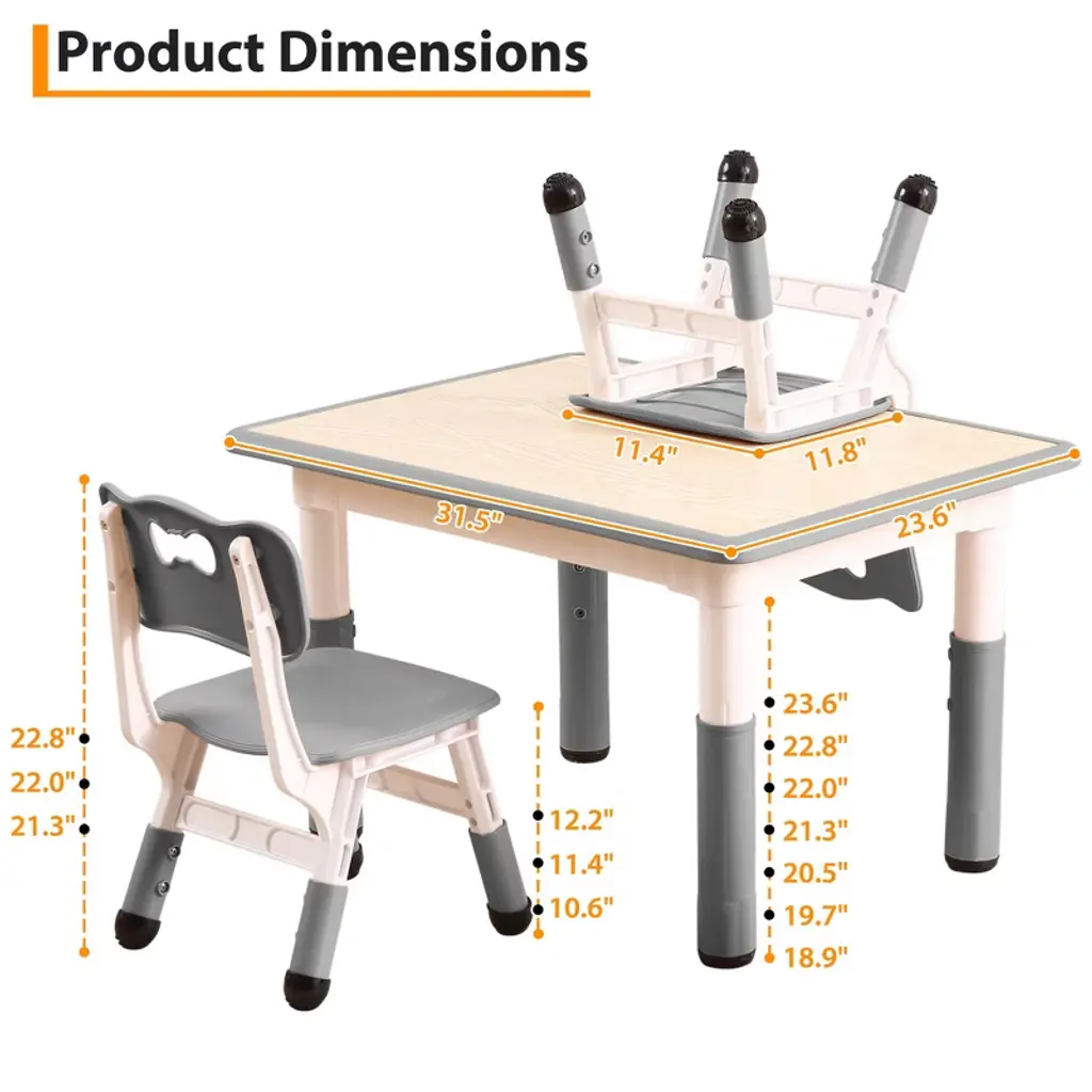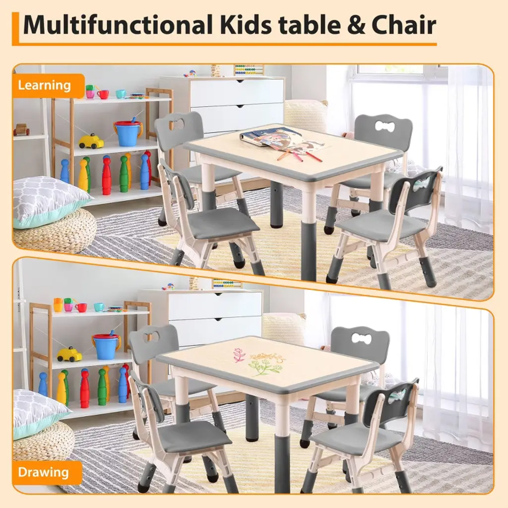 Toddler Table And Chair Set, Height Adjustable Kids Table And Chair Set Of 4, Toddler Table For Reading, Drawing, Eating, For Ages Over 3, Grey