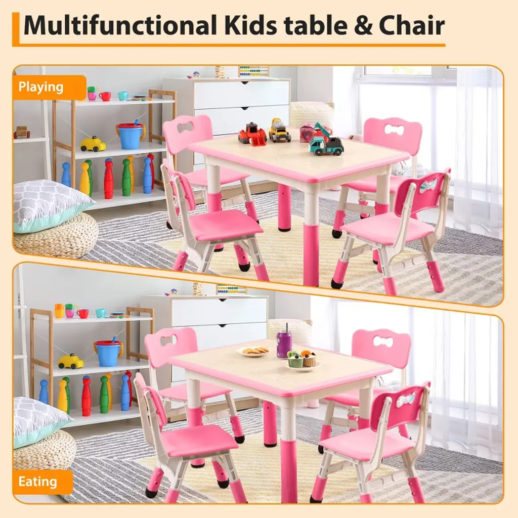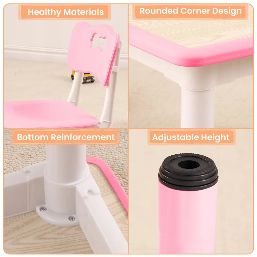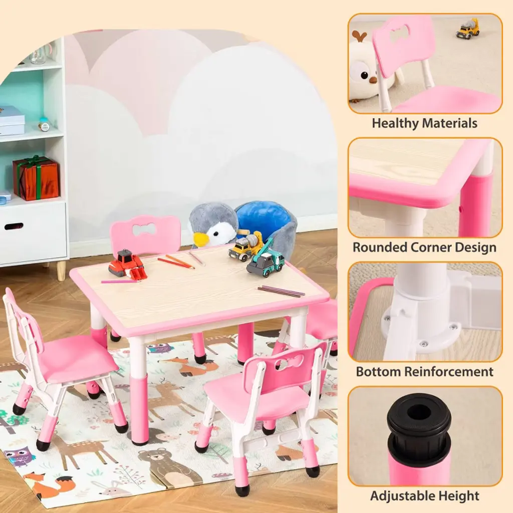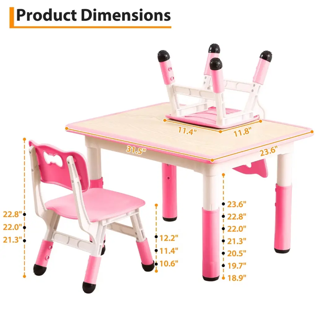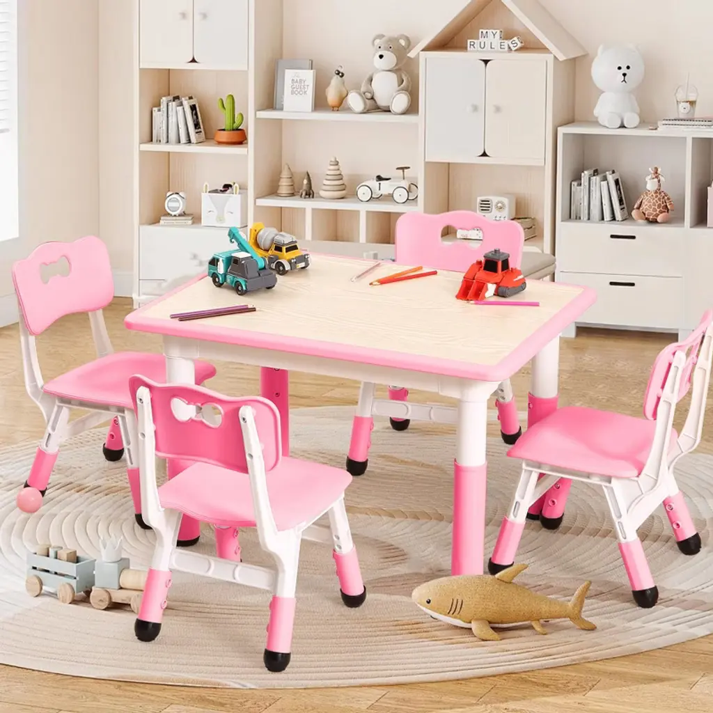 Toddler Table And Chair Set, Height Adjustable Kids Table And Chair Set Of 4, Toddler Table For Reading, Drawing, Eating, For Ages Over 3, Pink