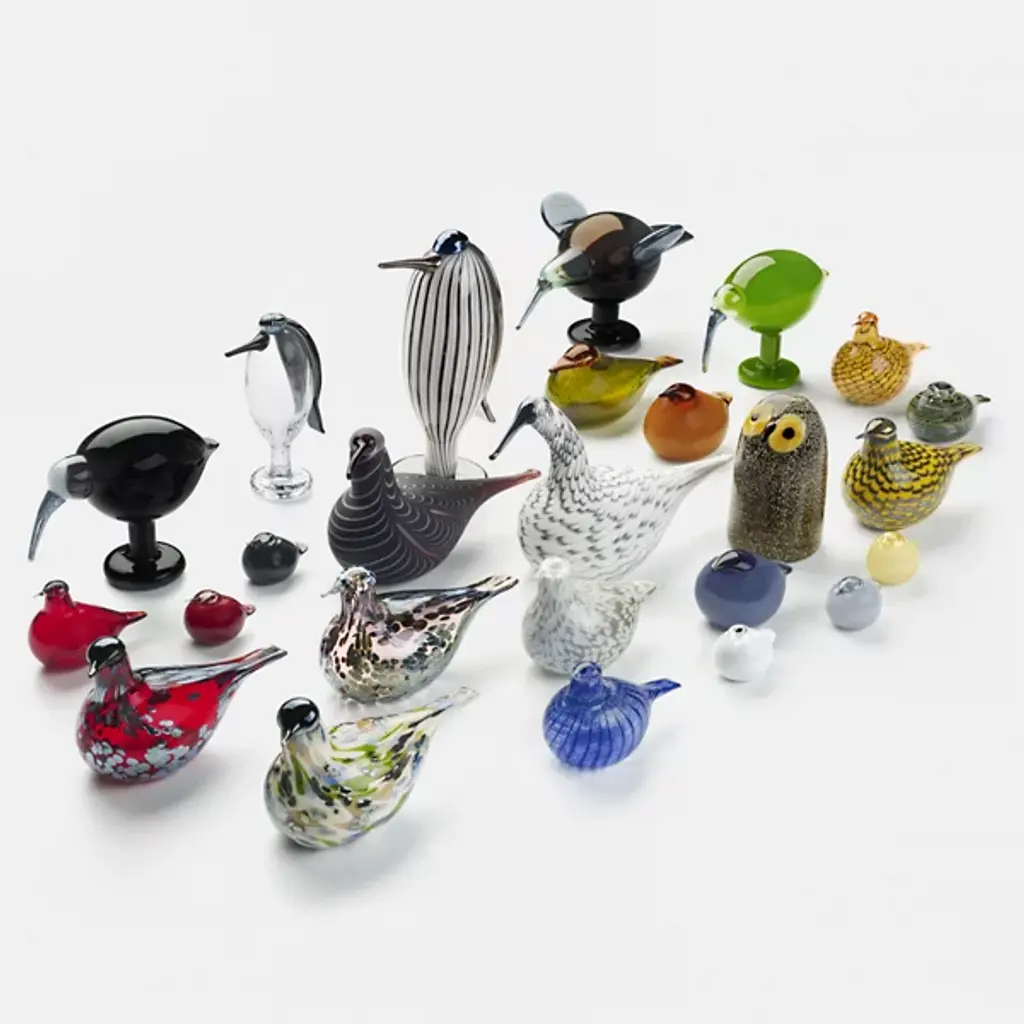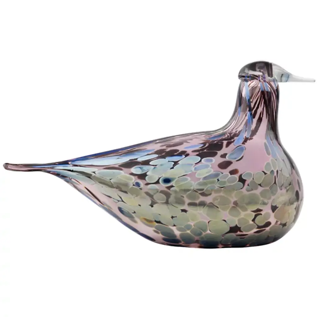 While its live namesake has relatively understated buff and brown plumage, the Iittala Toikka Bird - Reed Warbler is vibrantly iridescent. With this mouth-blown version, a variety of metals and minerals are blended into the clear glass to create the distinctively dappled color palette. Designed by Oiva Toikka.