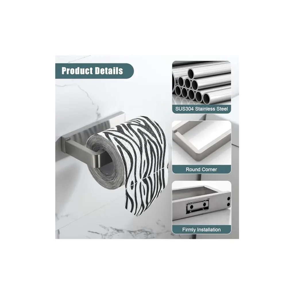 Toilet Paper Holder Brushed Nickel, Bathroom Toilet Roll Holder, Stainless Steel Square Tissue Holder Rack Wall Mounted For Kitchen Washroom