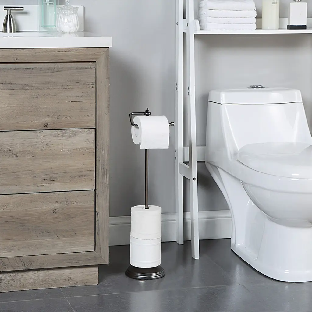 Bathroom Free Standing Toilet Tissue Paper Roll Holder Stand, Easy to install, With Reserve Function That Holds Up To 3 Extra Rolls Of Toilet Paper. Never Run out the Paper