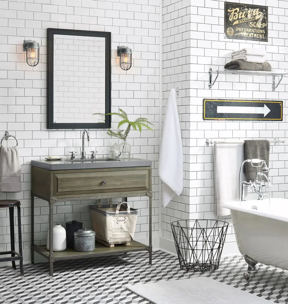 Industrial design meets classic refinement with Tolson, featuring exposed details and a gently curved backplate.