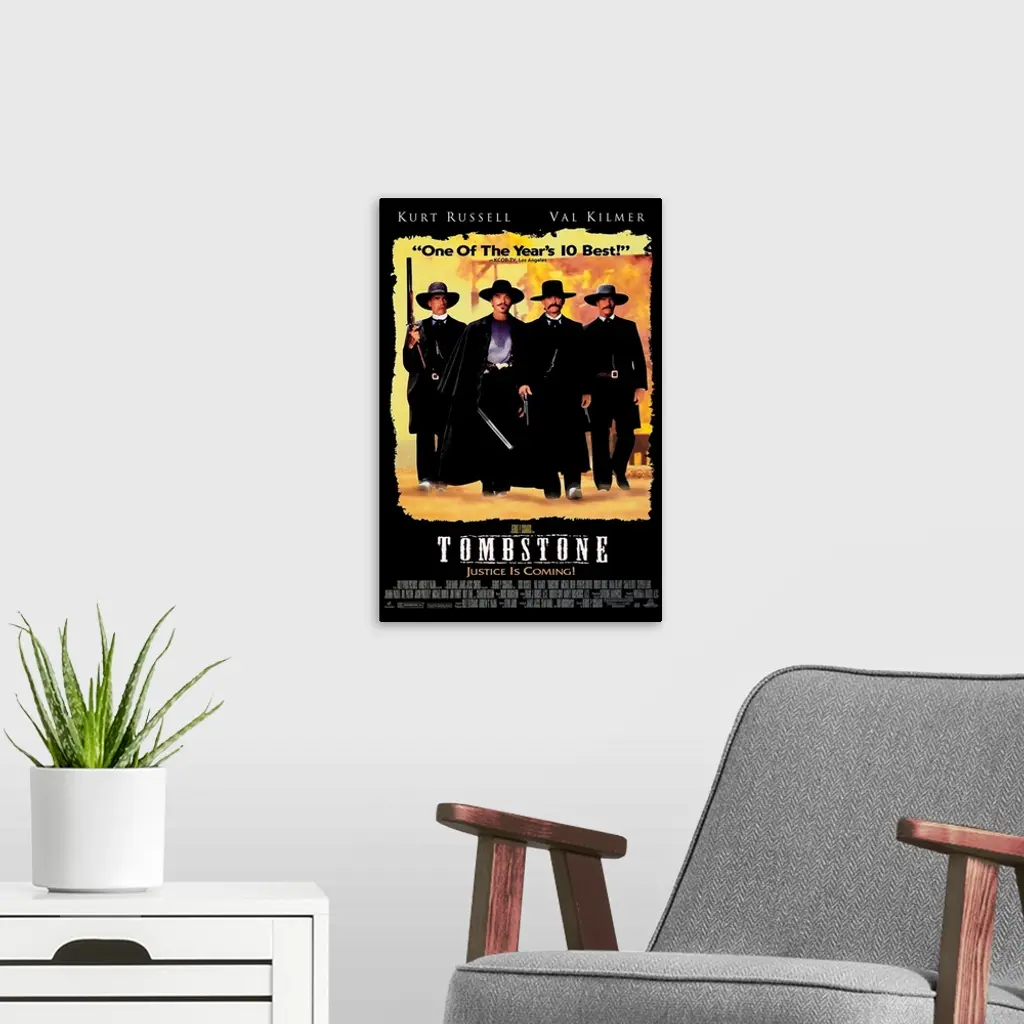 Saga of Wyatt Earp and his band of law-abiding large moustaches beat the Kasdan/Costner vehicle to the big screen by several months. Legendary lawman Wyatt (Russell) moves to Tombstone, Arizona, aiming to start a new life with his brothers, but alas, that's not to be. The infamous gunfight at the OK Corral is here, and so is best buddy Doc Holliday, gunslinger and philosopher, a role designed for scenery chewing (Kilmer excels). Romance is supplied by actress Josephine, though Delany lacks the necessary romantic spark. Russell spends a lot of time looking troubled by the violence while adding to the body count. Too self-conscious, suffers from '90s western revisionism, but blessed with a high energy level thanks to despicable villains Lang, Biehn, and Boothe.