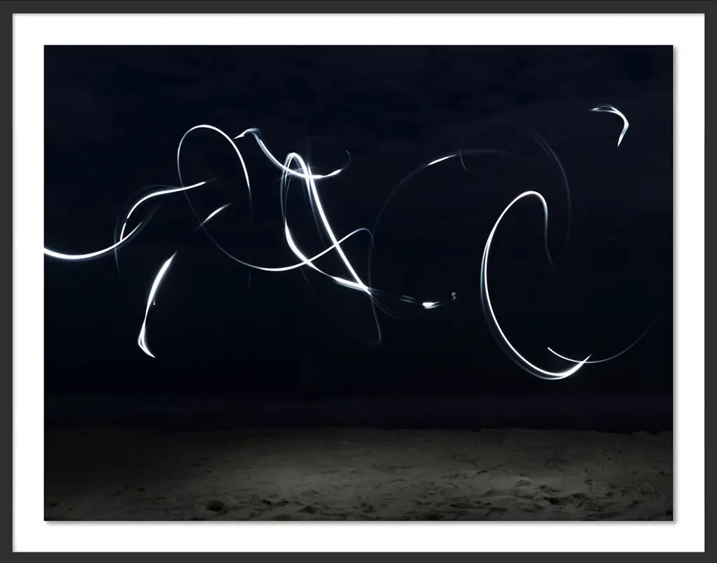 This intriguing photograph by Tommy Kwak captures moving lights on a seemingly deserted beach at night. The giclée print arrives framed and ready to hang.Photographer Tommy Kwak specializes in ethereal large-scale landscapes. A two-time participant in the SÍM Residency program in Reykjavík, he has had his work shown in New York as well as Iceland and has received commissions from, among others, fashion house Louis Vuitton.