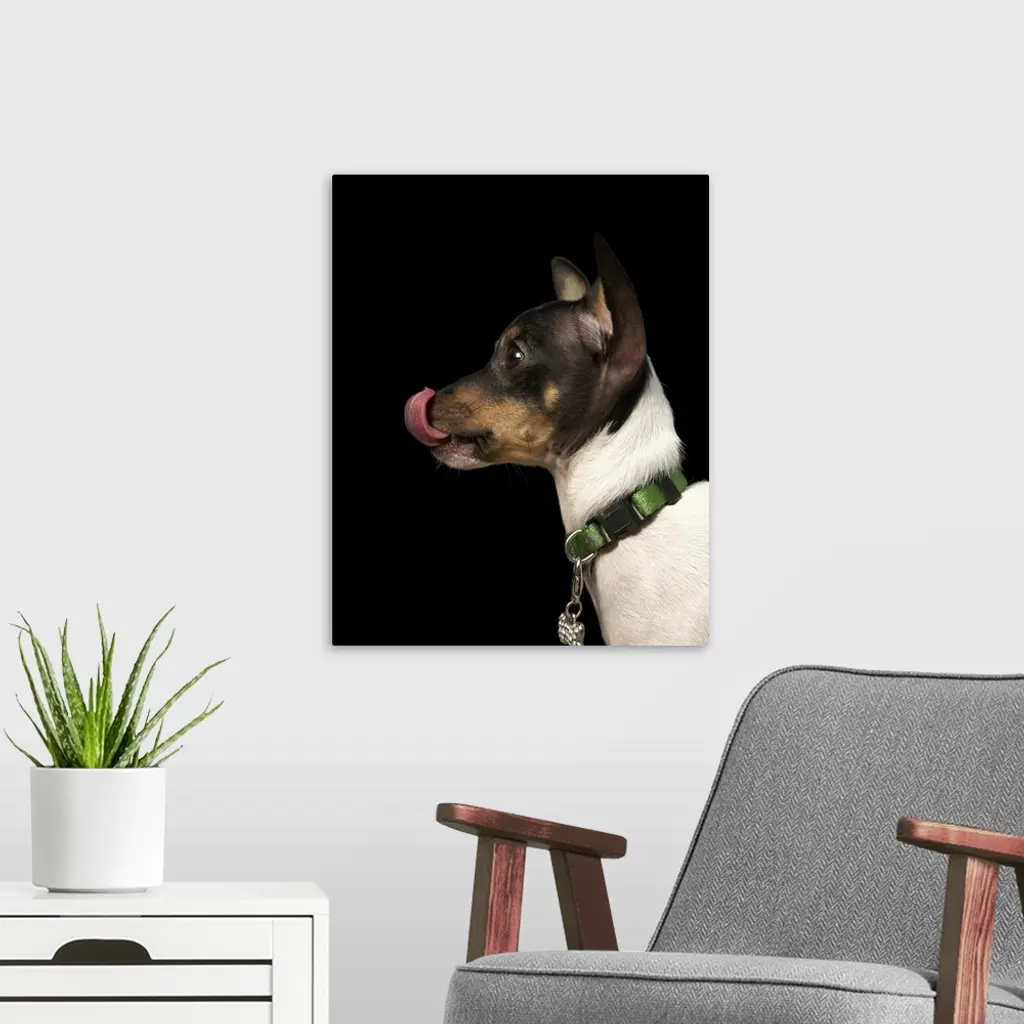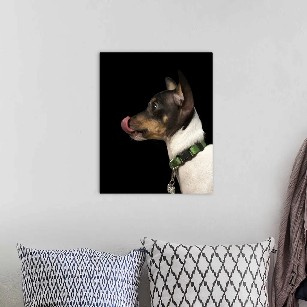 Tongue out of black and white rat terrier wall art for home and office decor. Discover canvas art prints, photos, mural, big canvas art and framed wall art in GreatBigCanvas.com's varied collections.