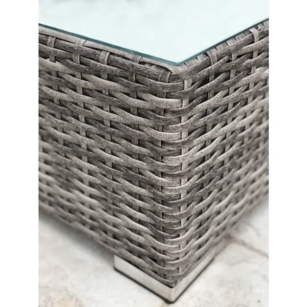 This 7-piece sectional seating group has room for everyone. Crafted from hand-woven, weather-resistant wicker, it's the perfect perch for your patio. The set includes a long sectional sofa and a glass-topped coffee table. It's UV, rust, water, and mildew resistant, so you can keep this set outside all year round – rain or shine. With 5" thick seat cushions and tapered back cushions, you and five friends can unwind in style. Plus, you’ll adore the easy-to-clean, water-resistant fabric that also stands up to UV fading and mildew. The best part? It arrives fully assembled. Just add friends and fun.