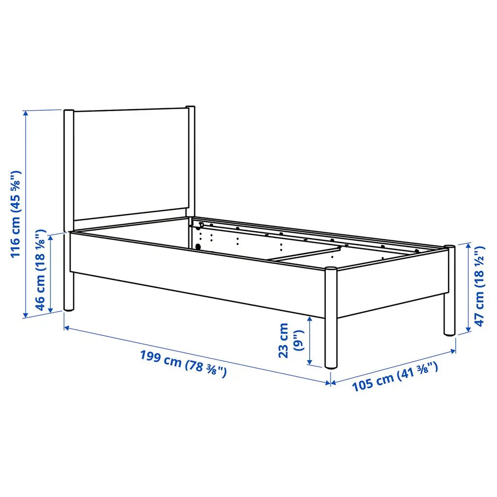 TONSTAD Bed frame - oak veneer/Luröy Twin. The bed has a strong and sturdy construction that allows you to use it for many years. Adjustable bed sides allow you to use mattresses of different thicknesses. The brushed veneer gives the furniture a unique look and a personal character.