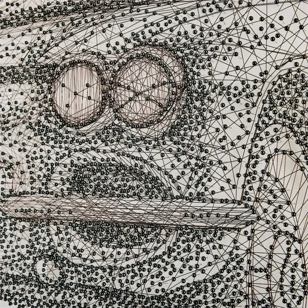 Classic Cruiser is a stunning love letter to the power and elegance of an iconic vehicle from years past. Shown in breathtaking detail, the car is brought to life through an intricate network of push pins and thread. This hand-made piece is held within a black wood gallery frame and may only be displayed from a horizontal orientation.
