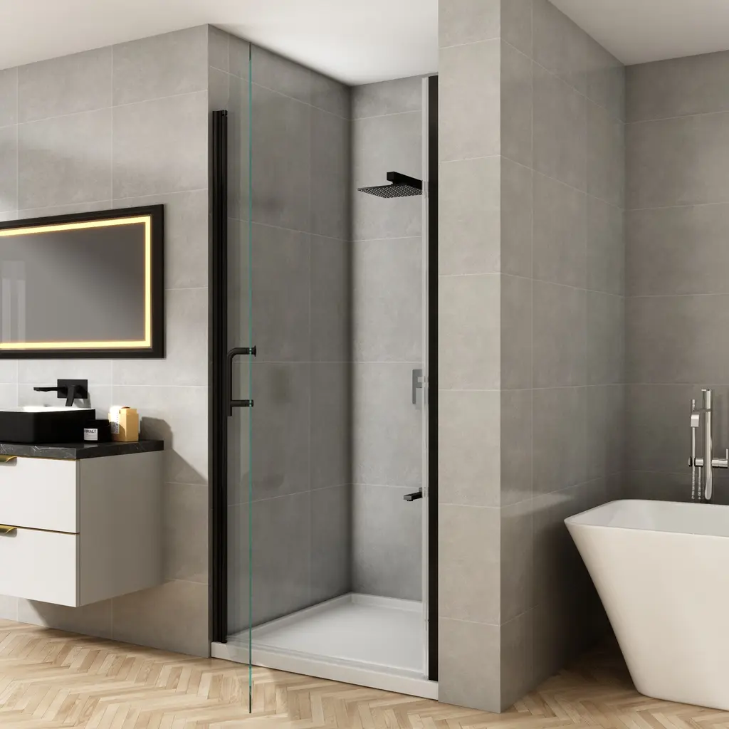 Pivot shower screen allows for a wide entry, while using minimal space. Great choice for smaller bathrooms, where a swing or sliding door will not work. Reversible for a right or left wall installation to fit your specific layout. [Prefabricated Shower Sizes specification]