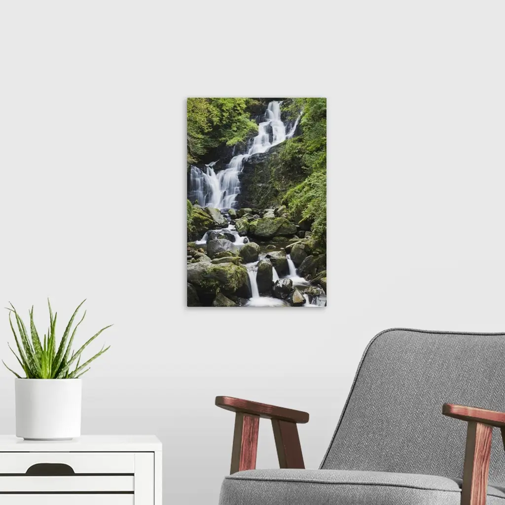 Torc Waterfall On Torc Mountain, Killarney, County Kerry, Ireland wall art for home and office decor. Discover canvas art prints, photos, mural, big canvas art and framed wall art in GreatBigCanvas.com's varied collections.