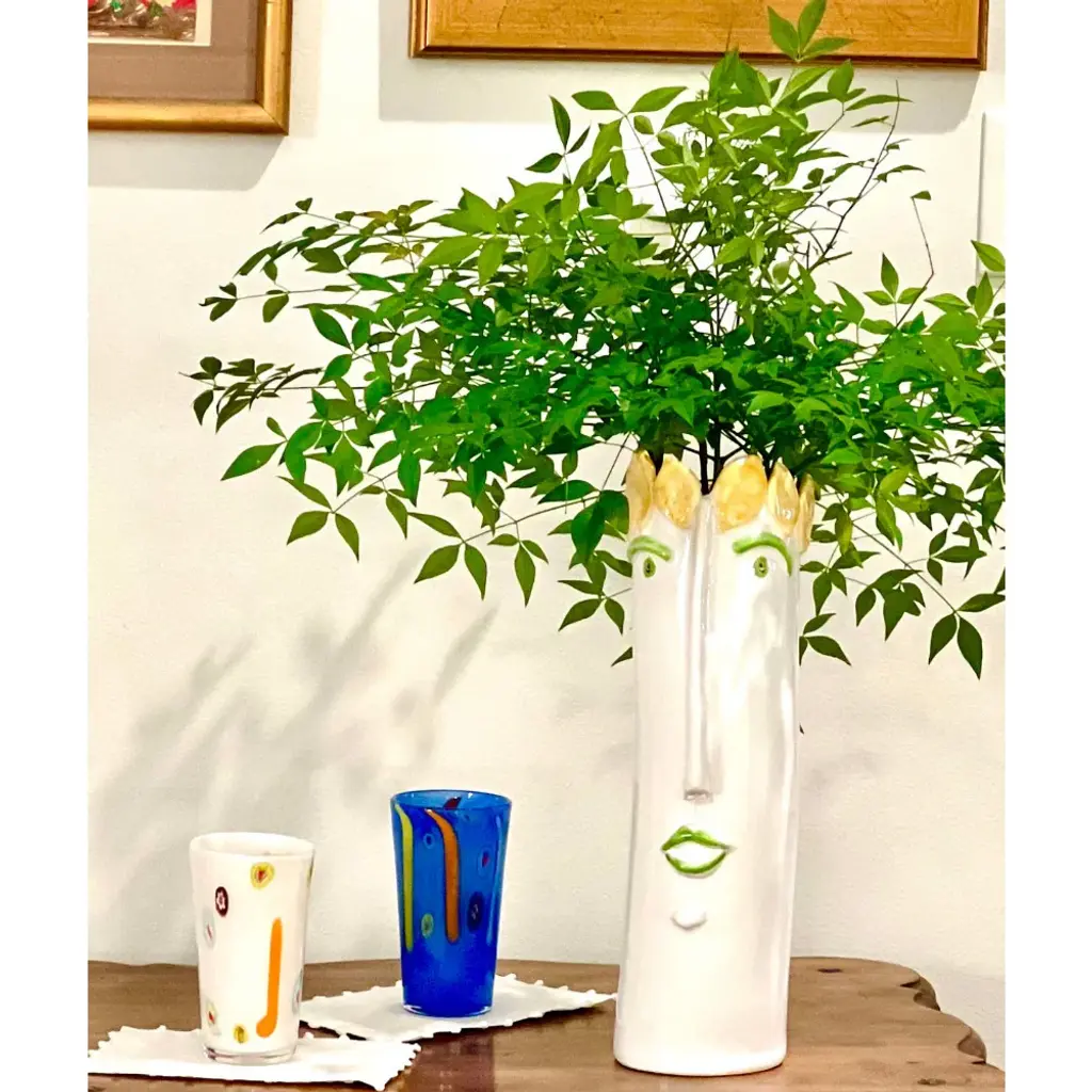 Add a cheerful aesthetic to your dining table or next get-together. The white drinking glasses are punctuated with fun colorful mouth-blown accents.