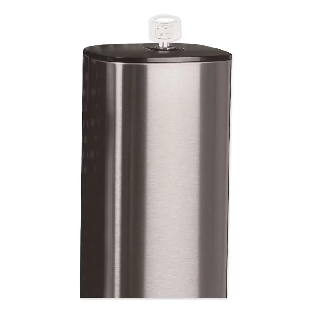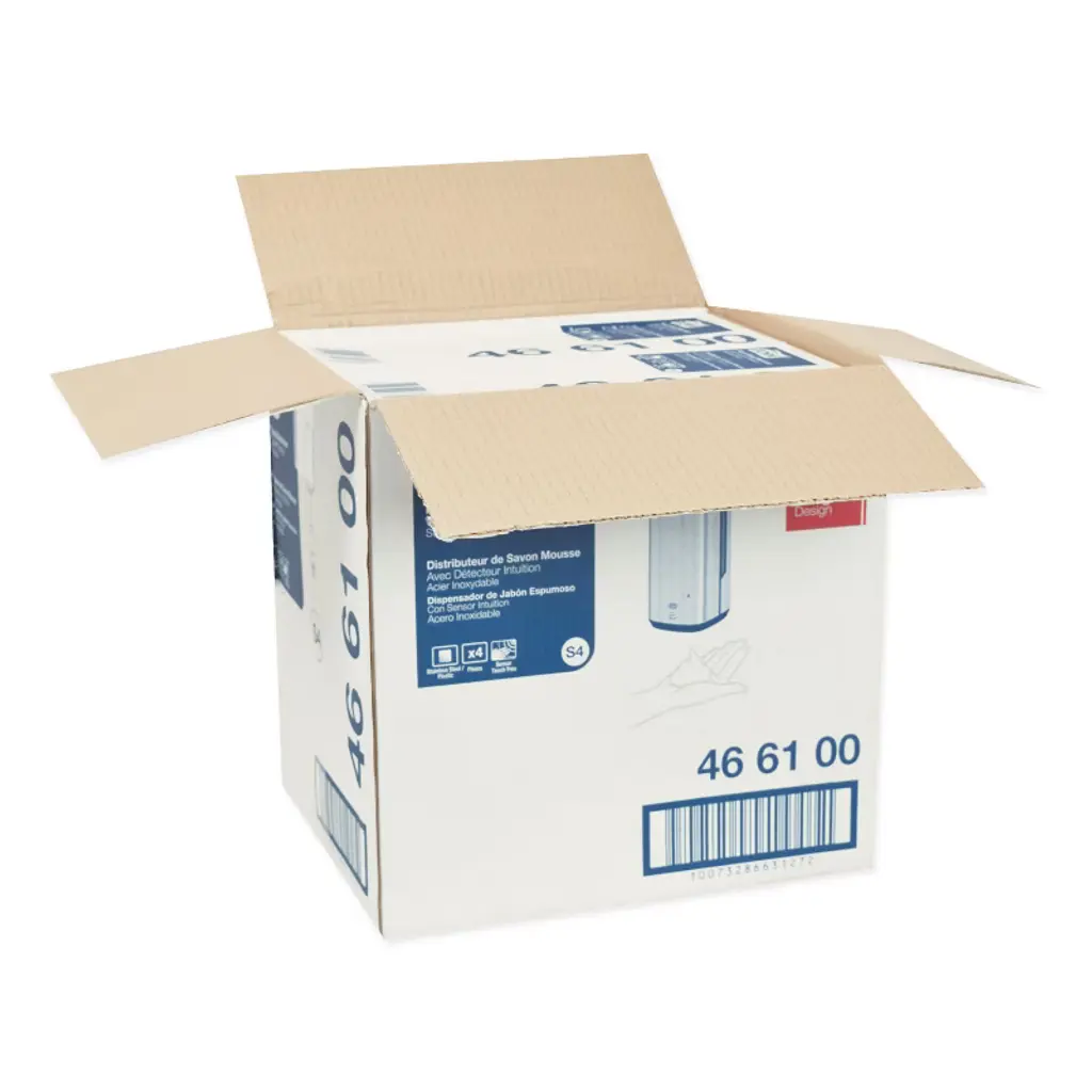 Tork® Image Design Foam Skincare Automatic Dispenser with Intuition® Sensor features a gently brushed stainless steel with fine lines. Subtle curves provide clean lines and smooth surfaces. Its touch free convenient dispensing is easy to load, and contains a high capacity refill. Meanwhile the enclosed system helps avoid cross contamination and an LED refill and low battery light indicate when maintenance is required. QR Code inside dispenser links to videos to show how to replace refill and batteries. EasyCube® compatible.