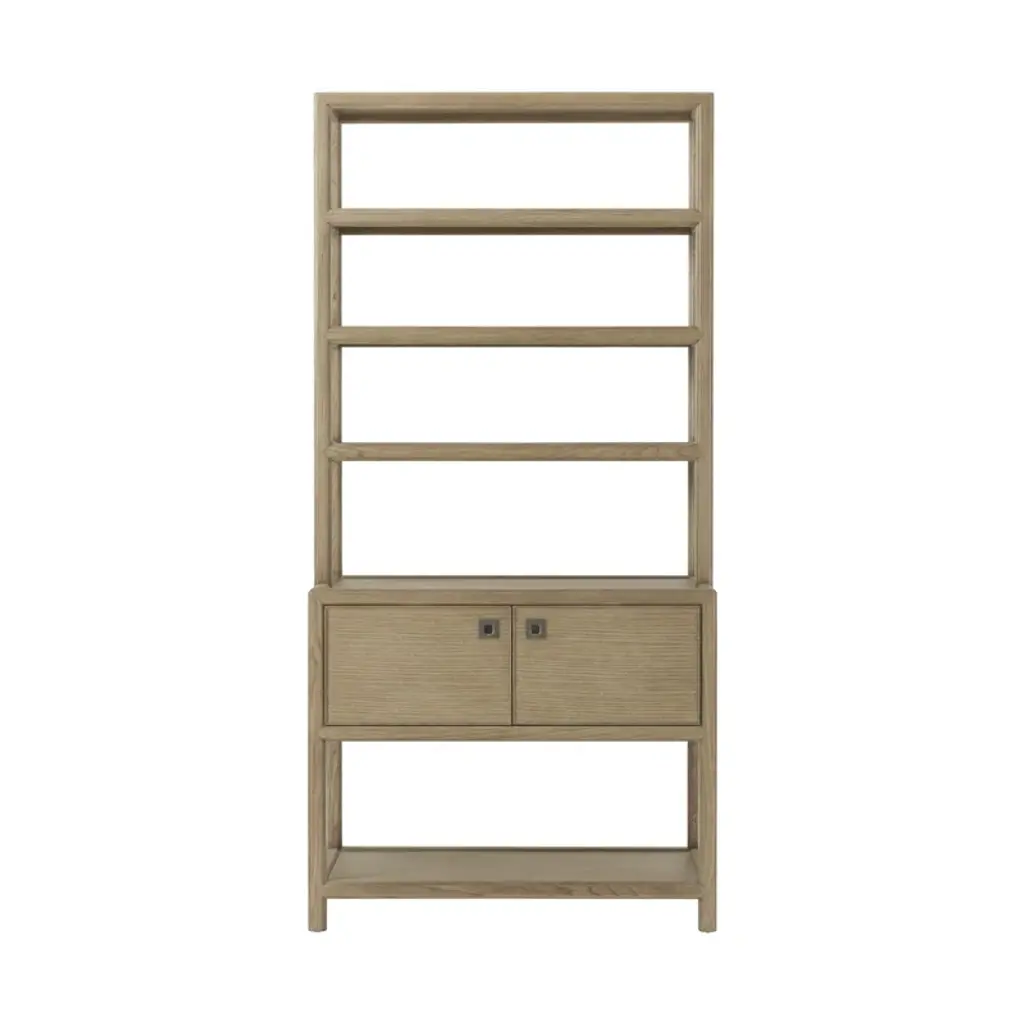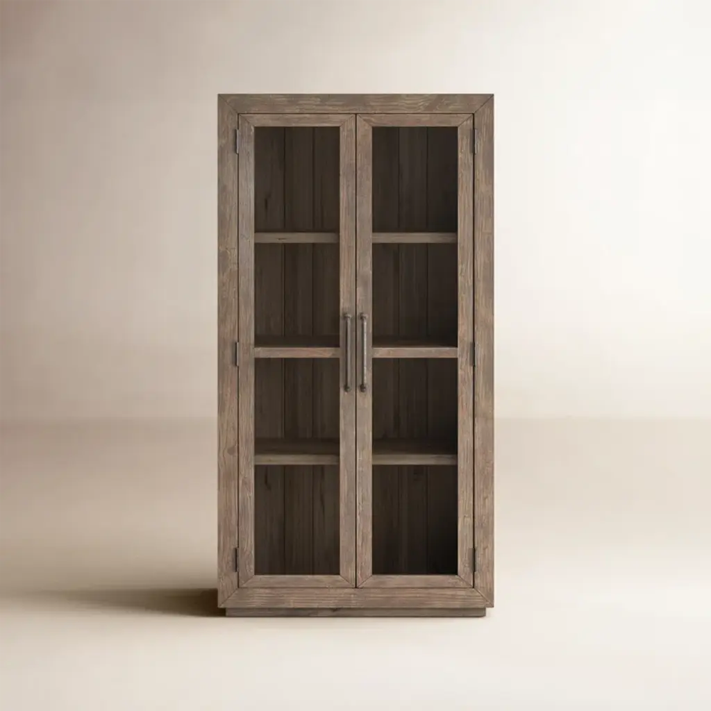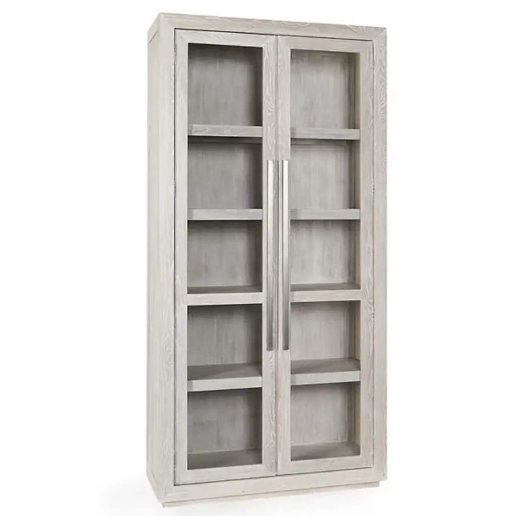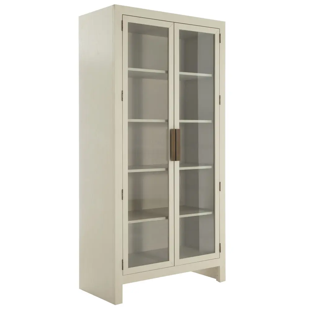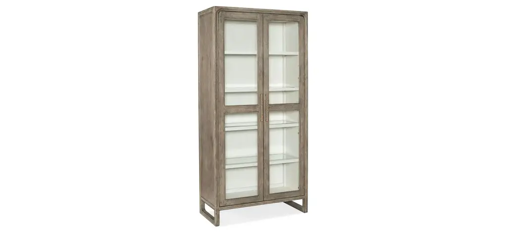 Torrin china cabinet is organic and contemporary with a touch of glamour. Clean lines and soft rounded corners give this cabinet a light and airy feel while the metallic accents add the perfect finishing touch. Constructed of wire-brushed oak veneers in a natural finish.
