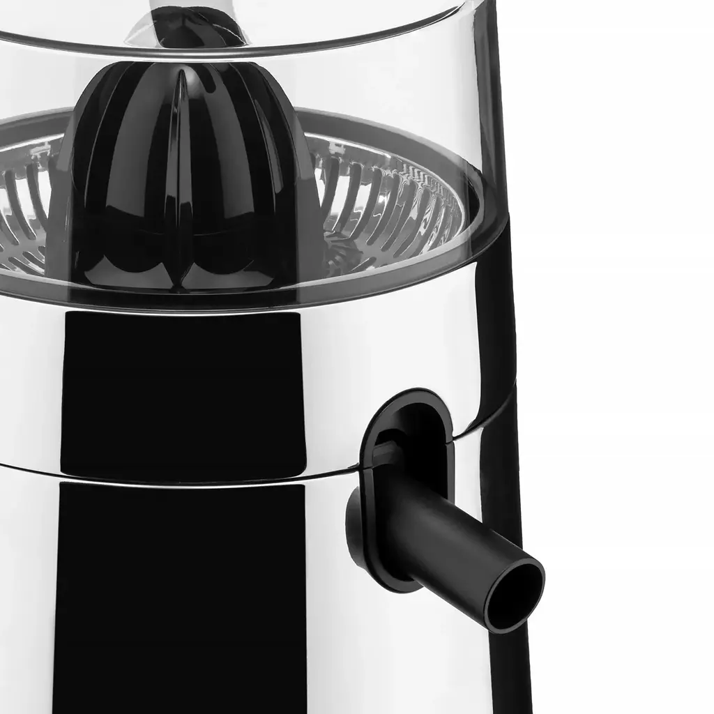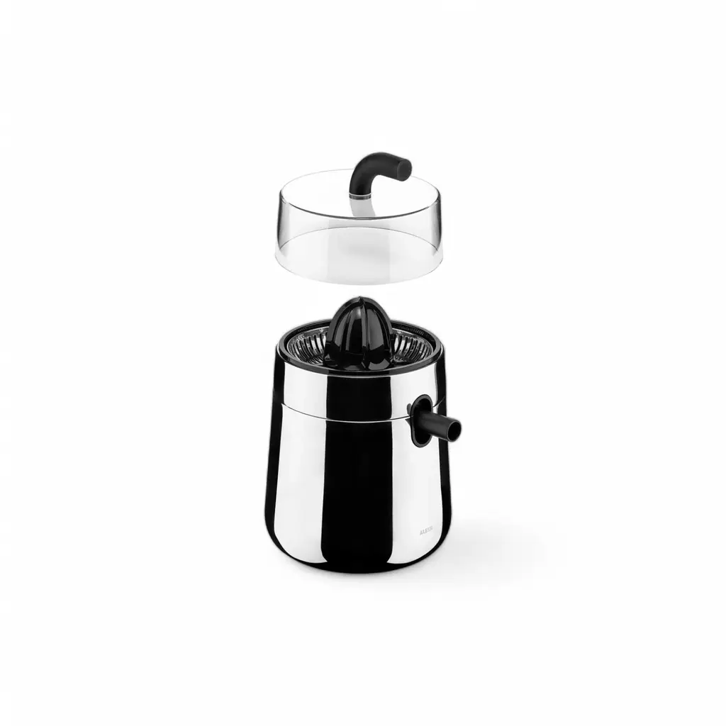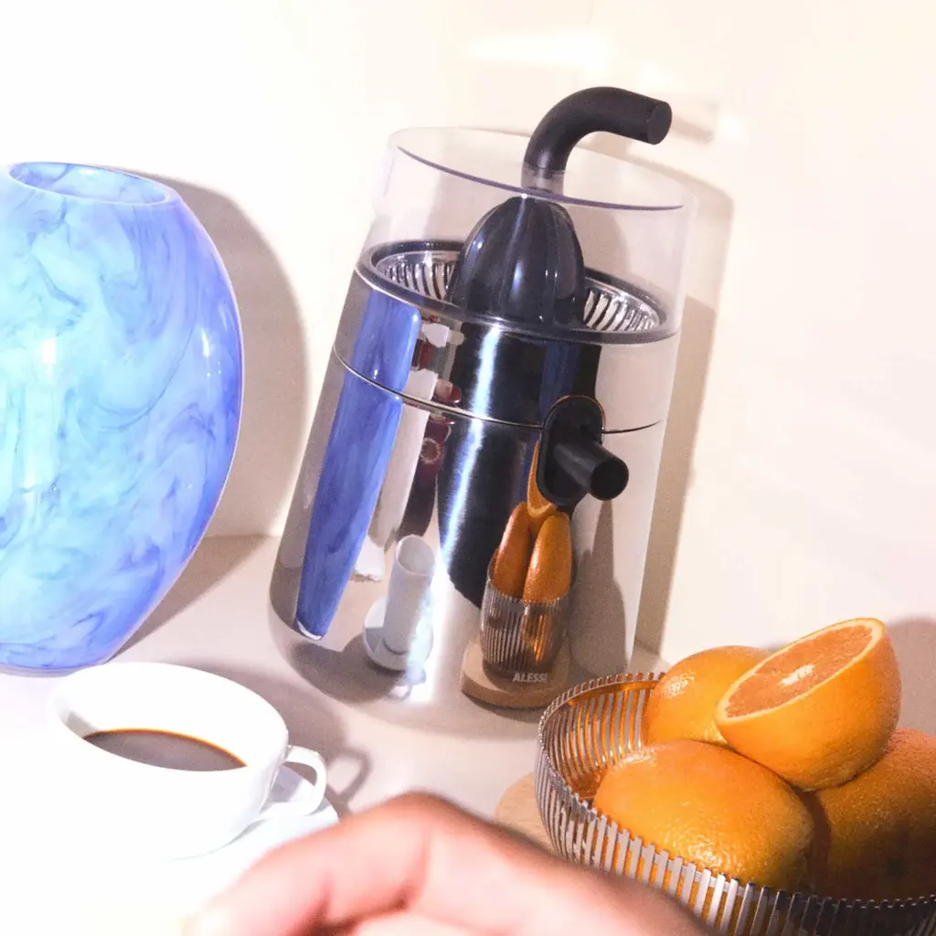 Stay on top of your vitamin C intake and keep your kitchen stylish with the Alessi Toru Electric Citrus Squeezer. Designed by award-winning studio Nendo, this juicer is part of the Toru collection which translates to ‘through’ in Japanese. Like the other products from this series, the electric citrus squeezer features tubular elements that create an optical illusion. In this case, the curved handle seems to “cut through” the transparent lid and then emerge from the body of the juicer as a spout. Easy to use, the Alessi Toru Electric Citrus Squeezer allows you to prepare fresh juice every morning and pour it with ease in glasses. Made from polished stainless steel and thermoplastic resin, this elegant electric juicer is as durable as it is beautiful.