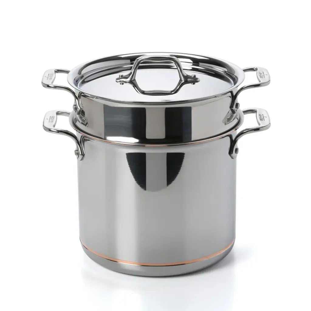 The high conductivity of pure aluminum merges with the practicality and hygiene of steel. Technology: Tri-ply, 18/10 Stainless Steel, aluminum core, Induction Steel outside, Mirror polished surfaces, outside and inside, Handles with strongly fixed 18/10 Stainless Steel rivets, Graduated measurement inside. Dishwasher proof. Results: The heat is distributed evenly over the surface of the pot; Greater control of cooking temperature; Considerable saving of energy and time; Minor alteration of vitamins and proteins during cooking.