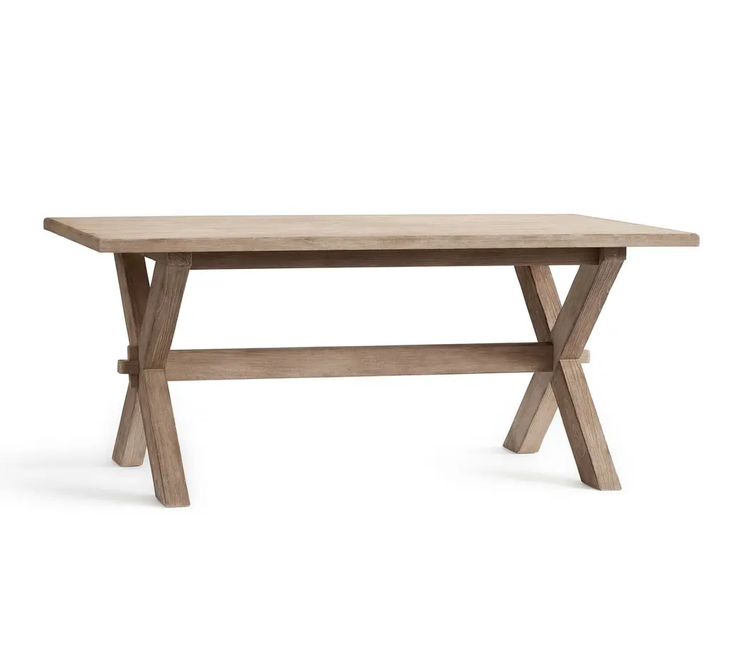 Inspired by authentic Italian farmhouse furniture, Toscana has an exclusive Seadrift finish that imparts a timeless, weathered appearance. Sawhorse supports and keyed-through tenons give it a rustic look we love, while eased edges maximize legroom and serving space.