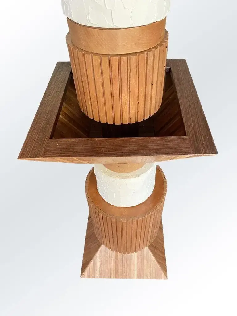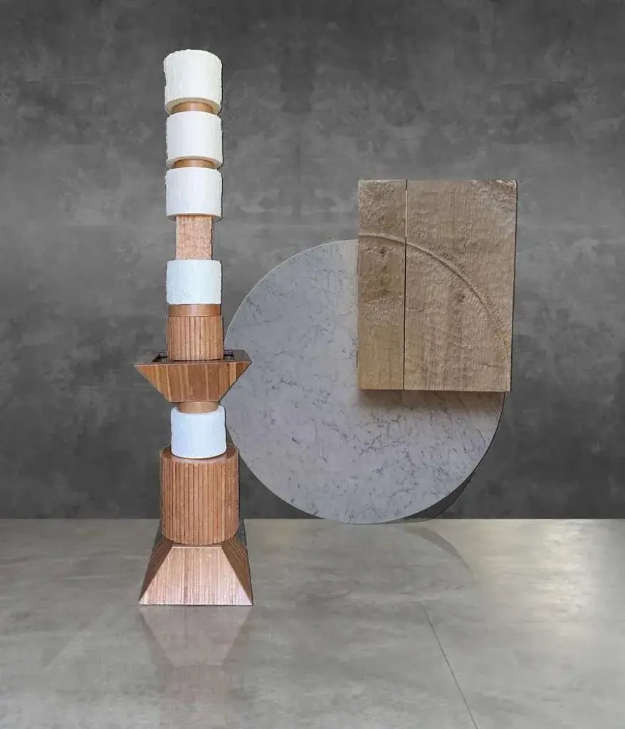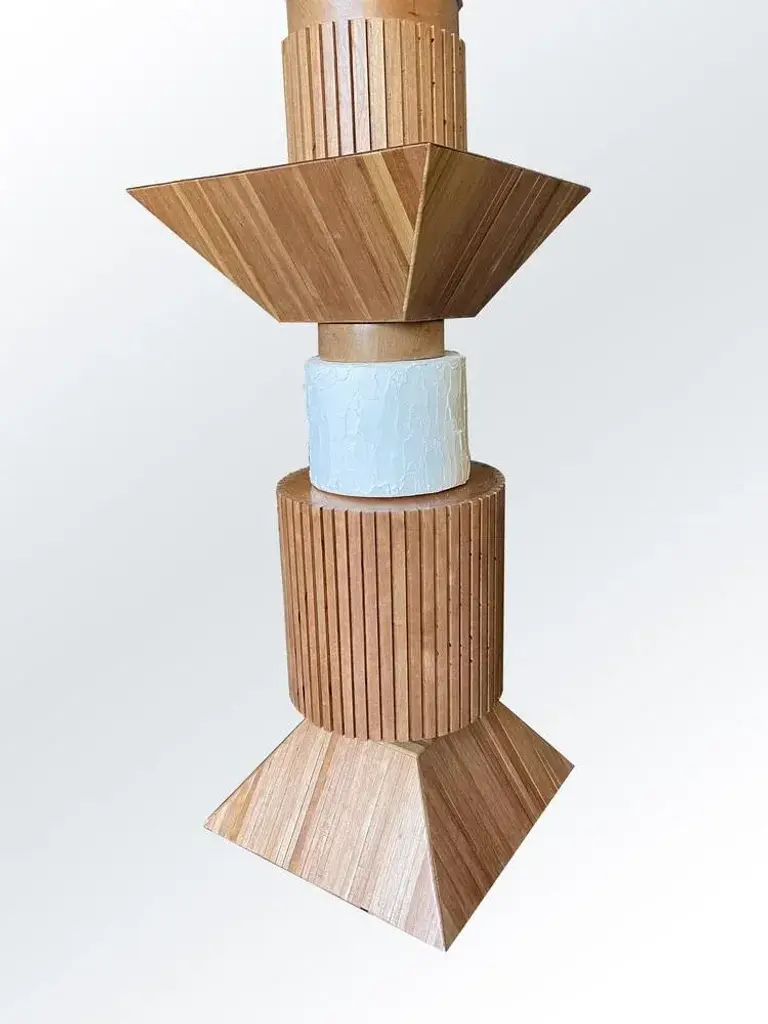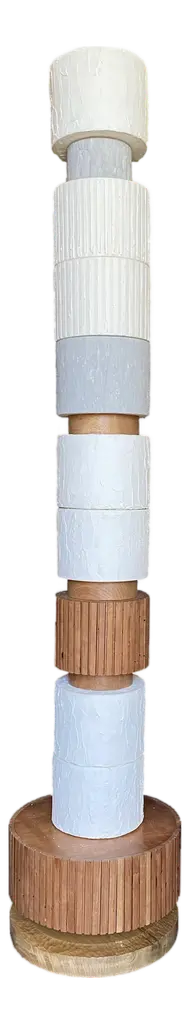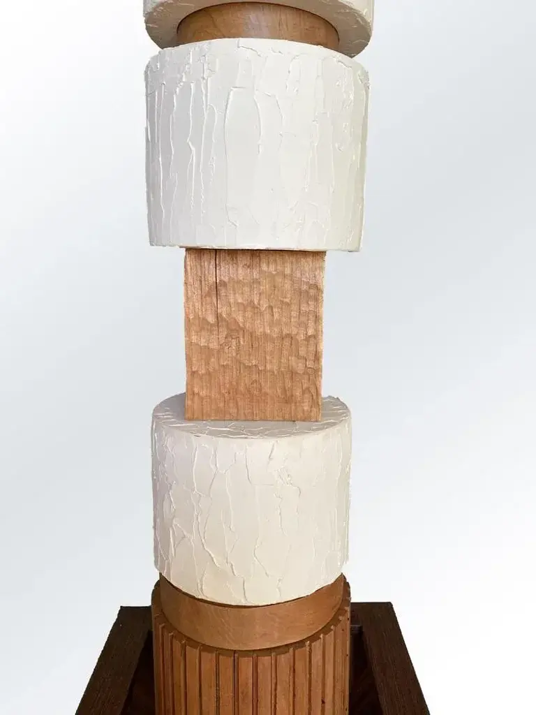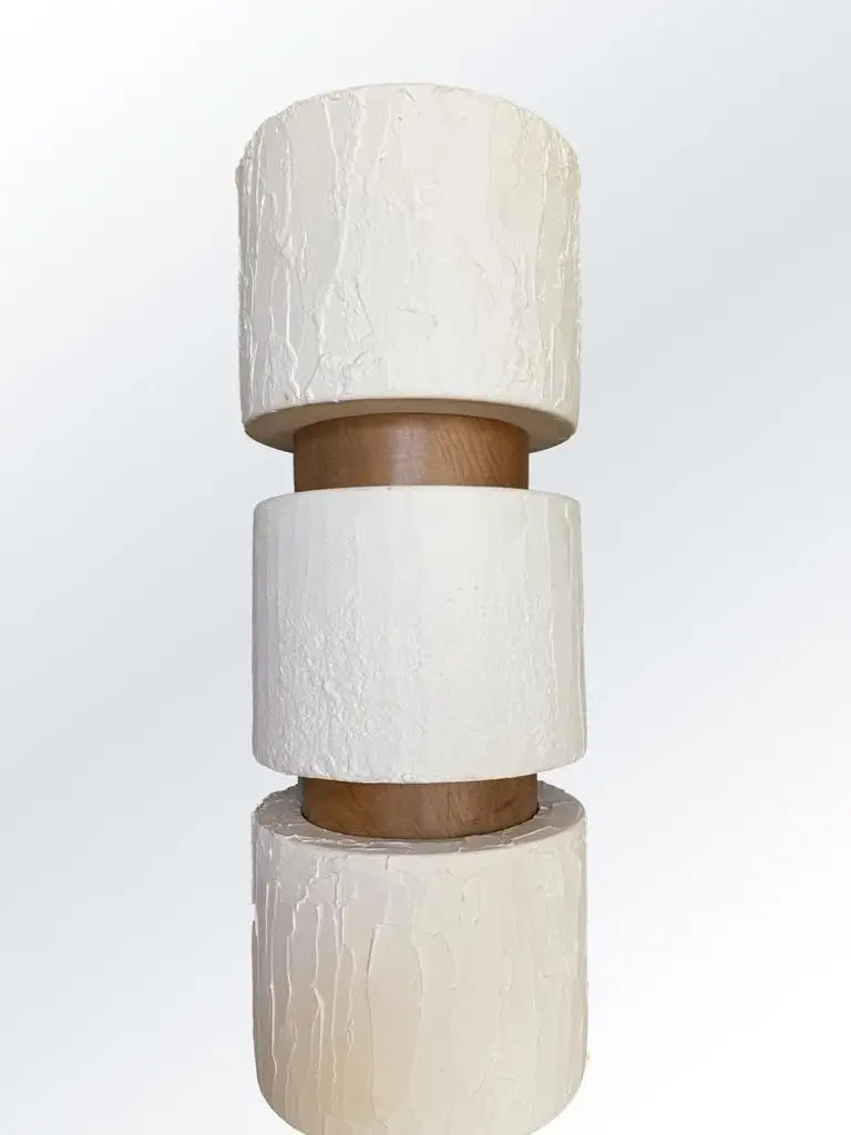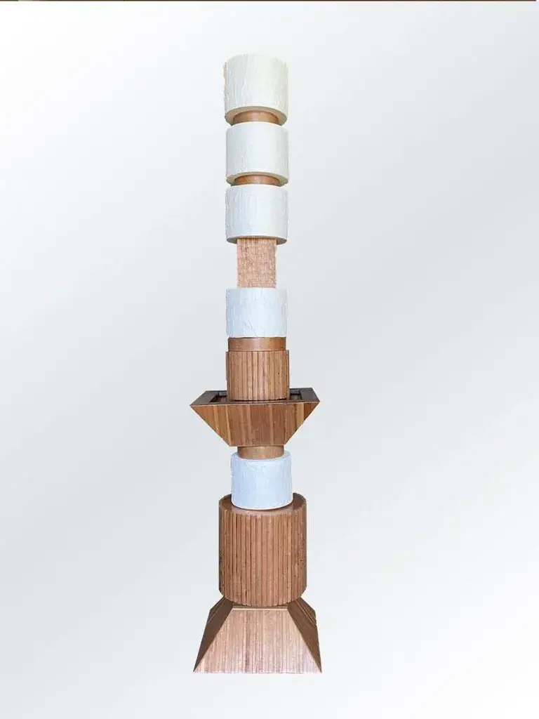 "Totem Lamp 16" ground lamp by Mascia Meccani, 2020. Handmade lamp with cherry parts also sculpted and parts of white -lap -lapped white terracotta and hand decorated with mixed technique. Each lamp is signed and numbered. Signed by Maker,Labeled by Maker,Numbered, European Plug (up to 250V).