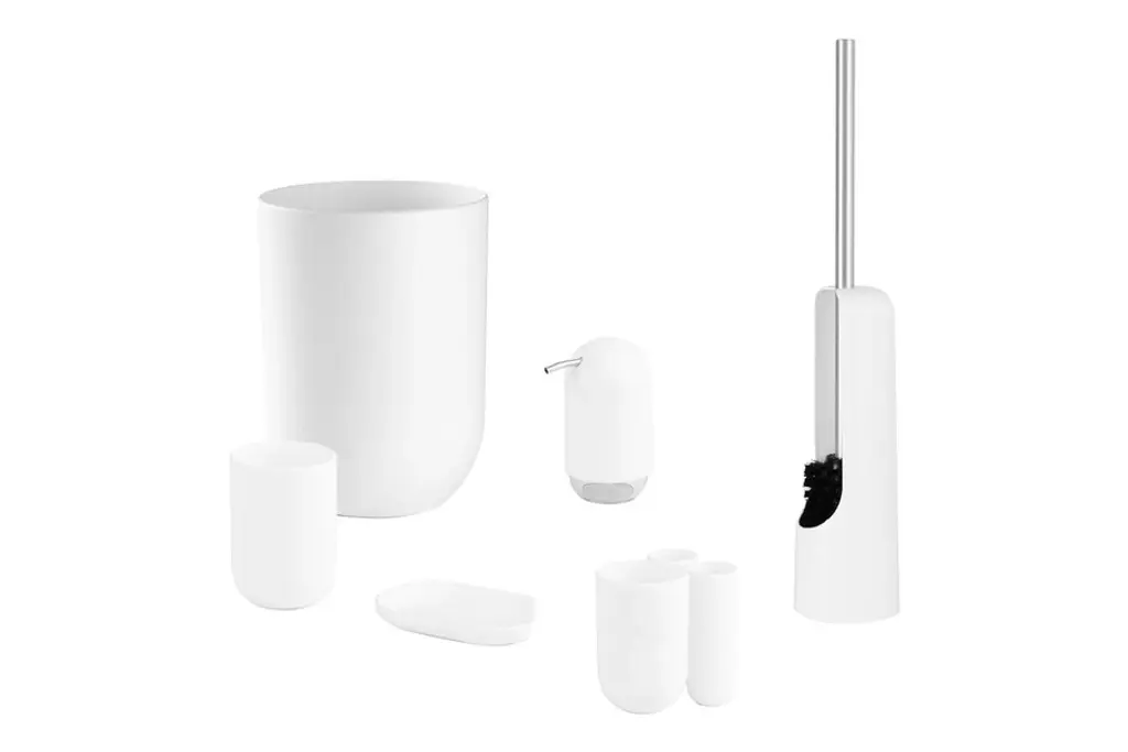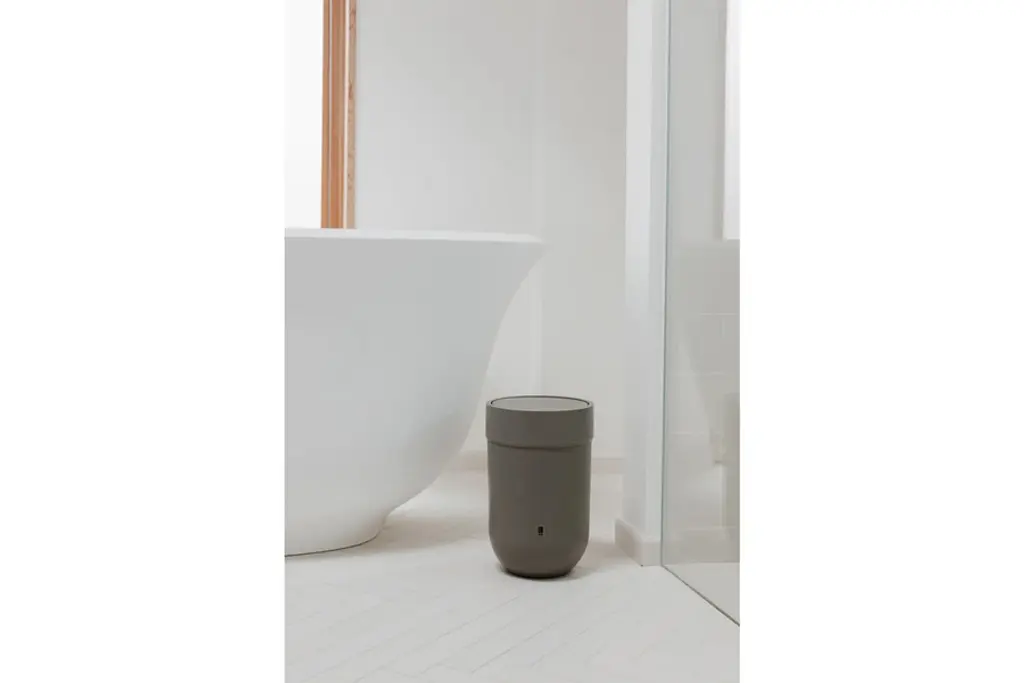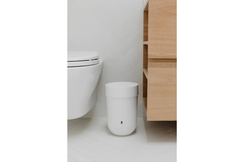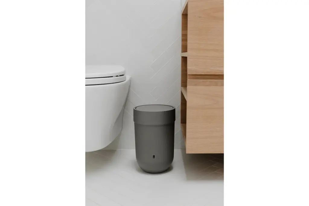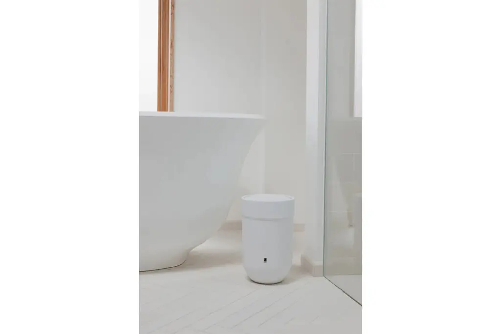 Featuring a sleek, unique silhouette and a decoratively durable surface, Umbras Touch Waste Can with Lid is designed by Alan Wisniewski and available in an eye-catching array of colors. On its own or along with other Touch accessories by Umbra, the Touch Waste Can with Lid makes it easy to complement or contrast your existing aesthetic and is also ideal for the modest-sized modern space.