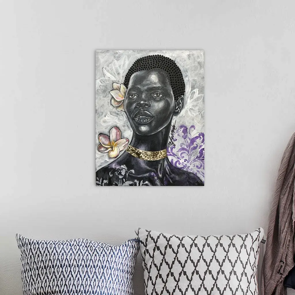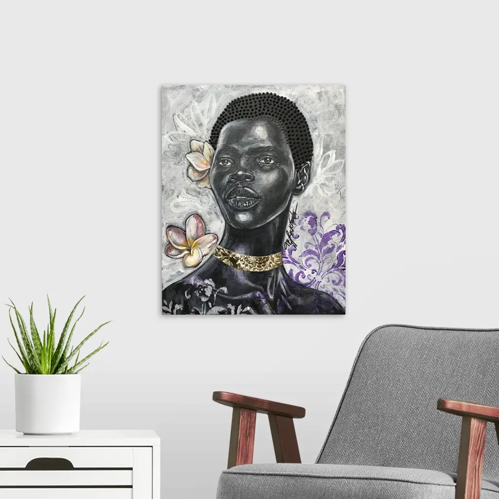 Touched by the sun, 2020. (Originally mixed media on canvas.) Inspiring woman brings strength and growth.
