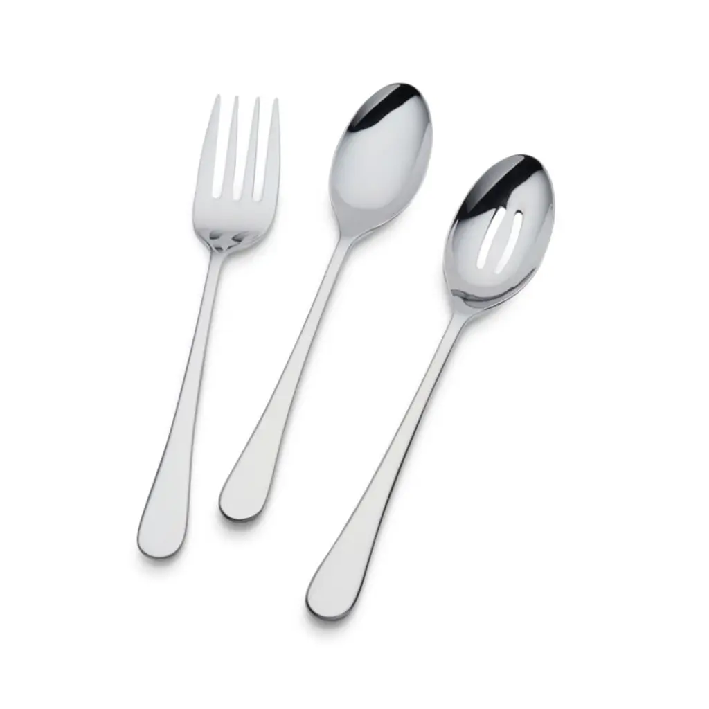 Fashionably svelte and highly polished. The slender, flowing shapes of our Tour serving set are stamped and forged in stainless steel and mirror-finished for added sparkle. This three-piece set includes a serving fork, serving spoon and slotted serving spoon. Designed by Robert Welch exclusively for Crate and Barrel, this trio pairs perfectly with our Tour flatware collection. Robert Welch and other Wedding Registry offers