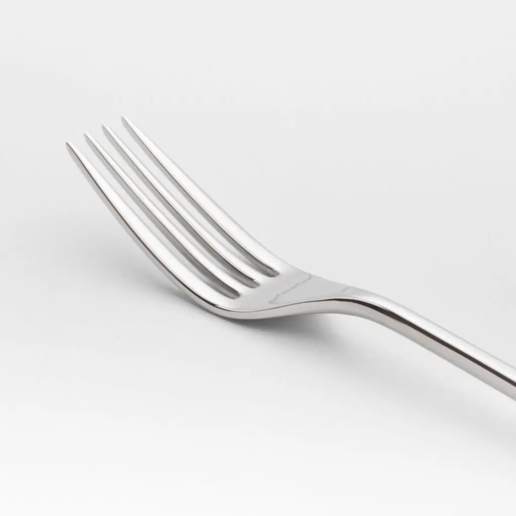 Fashionably svelte and highly polished. Our slender stainless steel Tour salad fork is mirror-finished by hand for added sparkle. Designed by Robert Welch exclusively for Crate & Barrel, this fork pairs perfectly with our Tour serving pieces.