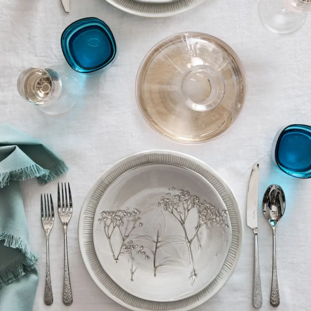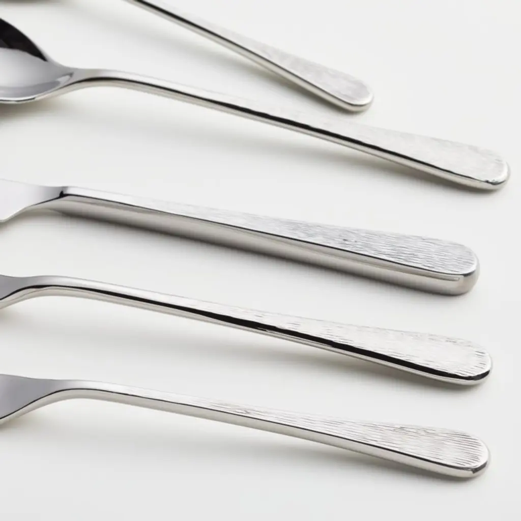 Fashionably svelte and highly polished. The slender, flowing shapes of our Tour flatware are stamped and forged in stainless steel and subtly scored with delicate lines. The resulting texture brings organic beauty to the table. Each of the four place settings includes a salad fork, dinner fork, dinner knife, dinner spoon and teaspoon. Designed by Robert Welch exclusively for Crate and Barrel, this 20-piece flatware set mixes perfectly with our Tour serving pieces in mirror and satin finishes.