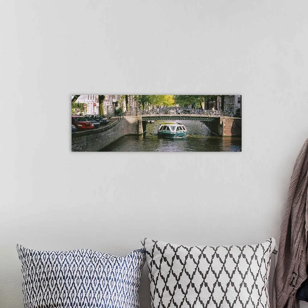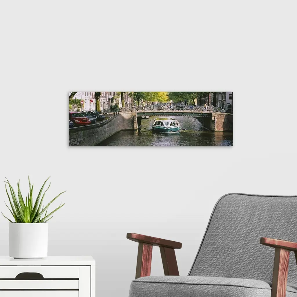 Tourboat under a bridge in a channel, Amsterdam, Netherlands wall art for home and office decor. Discover canvas art prints, photos, mural, big canvas art and framed wall art in GreatBigCanvas.com's varied collections.