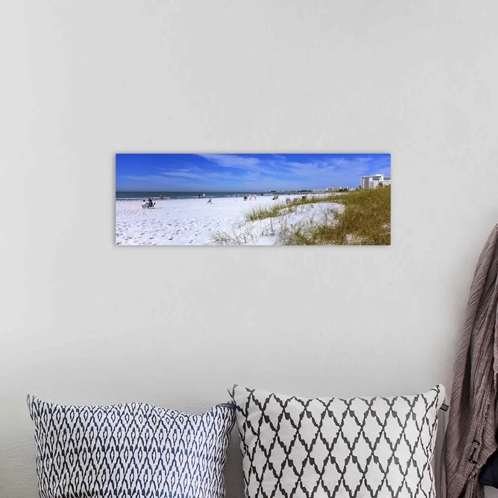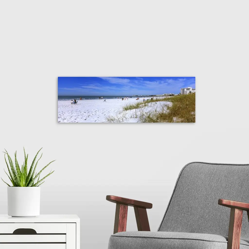 Tourists on the beach, Crescent Beach, Gulf Of Mexico, Siesta Key, Florida wall art for home and office decor. Discover canvas art prints, photos, mural, big canvas art and framed wall art in GreatBigCanvas.com's varied collections.
