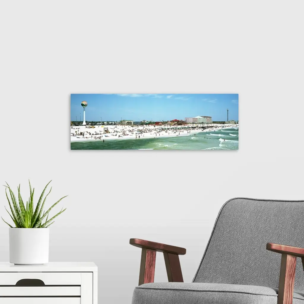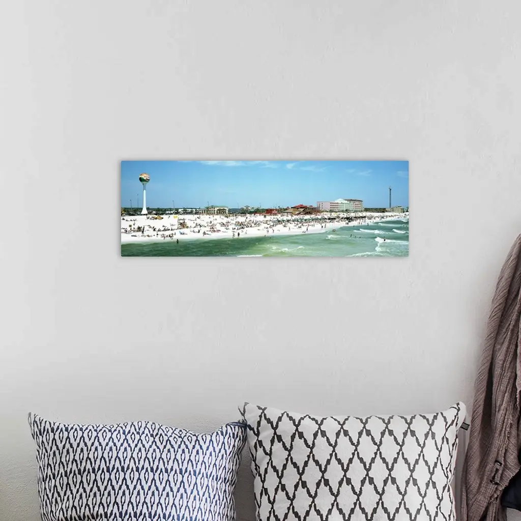 Tourists on the beach Pensacola Escambia County Florida wall art for home and office decor. Discover canvas art prints, photos, mural, big canvas art and framed wall art in GreatBigCanvas.com's varied collections.