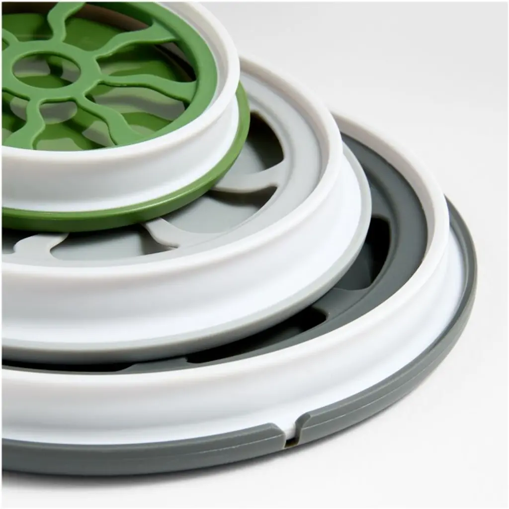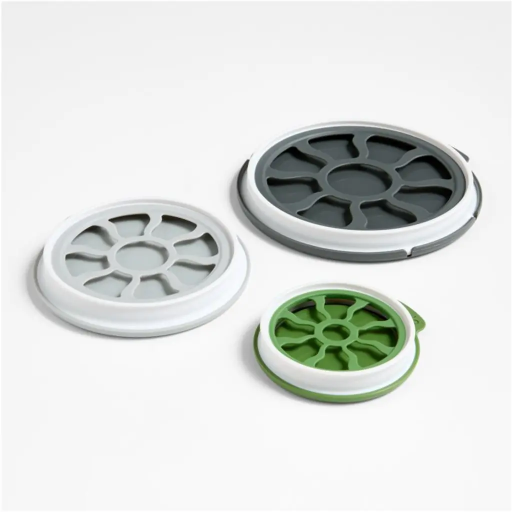 Replace plastic wrap and bags to store halved fruit and veggies. This three-size set has the right size for cut limes, lemons, avocados, onions and other produce. To create an airtight seal, place the fruit's cut end in the tray and stretch and snap the web-like silicone top into place.Get tips on how to organize your fridge.