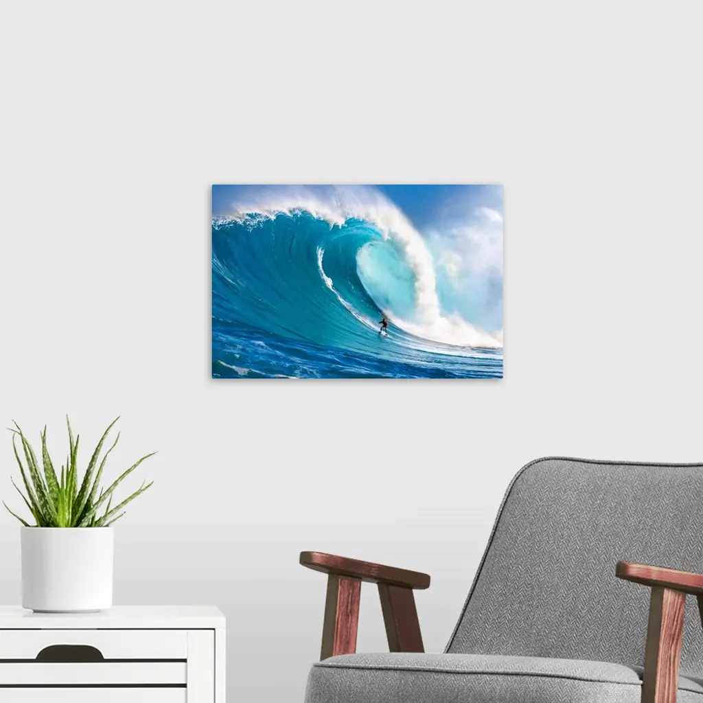 Tow-In Surfer, Peahi (Jaws) Off North Shore Maui, Hawaii
