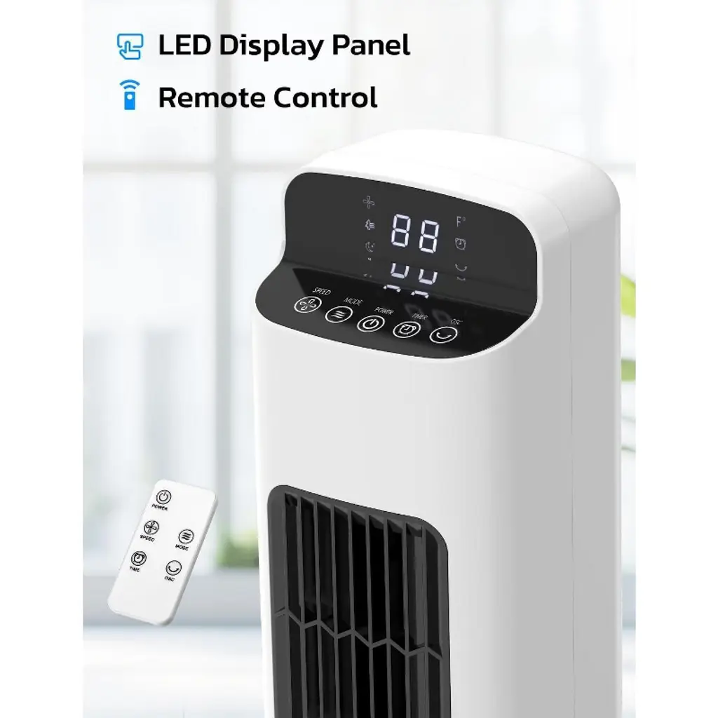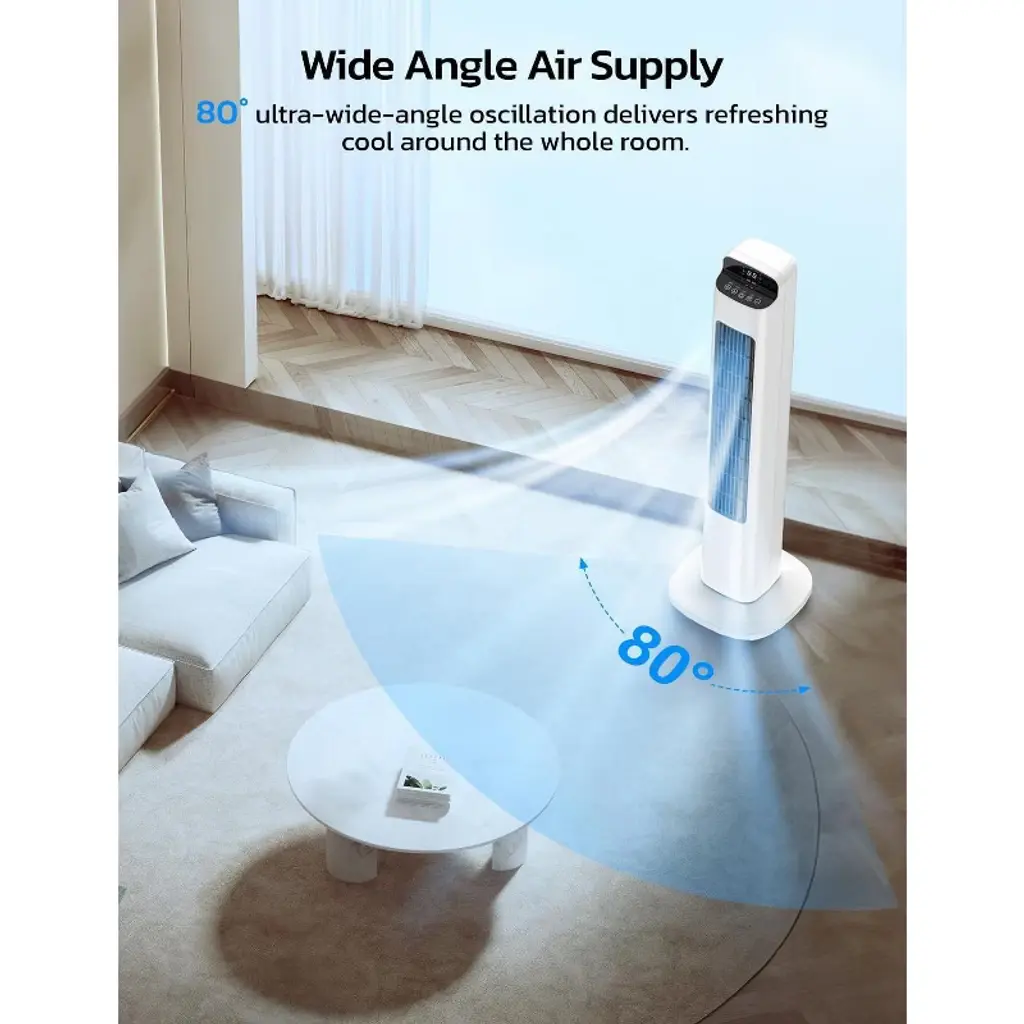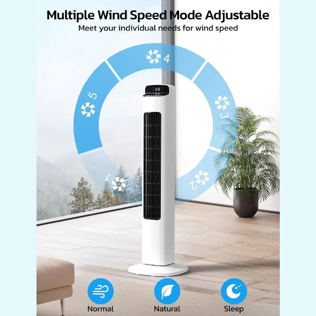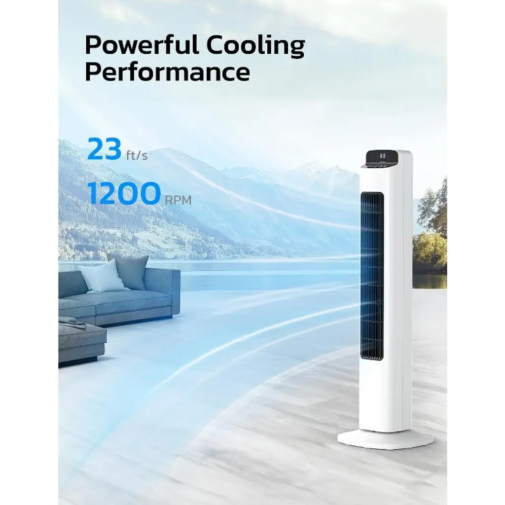Experience ultimate comfort with this quiet, oscillating tower fan—perfect for bedrooms, living rooms, or offices. Featuring 3 wind modes and 5 speed levels, it delivers powerful or gentle airflow tailored to your needs. The 80° wide-angle oscillation and 23ft/s air velocity ensure even cooling throughout the room. With a 1–12H smart timer and whisper-quiet 30dB sleep mode that adjusts to room temperature, it’s ideal for restful nights. The bladeless design is safe and modern, while the LED touch display and remote control offer effortless operation. Stay cool, sleep better, and enjoy smart living every day.