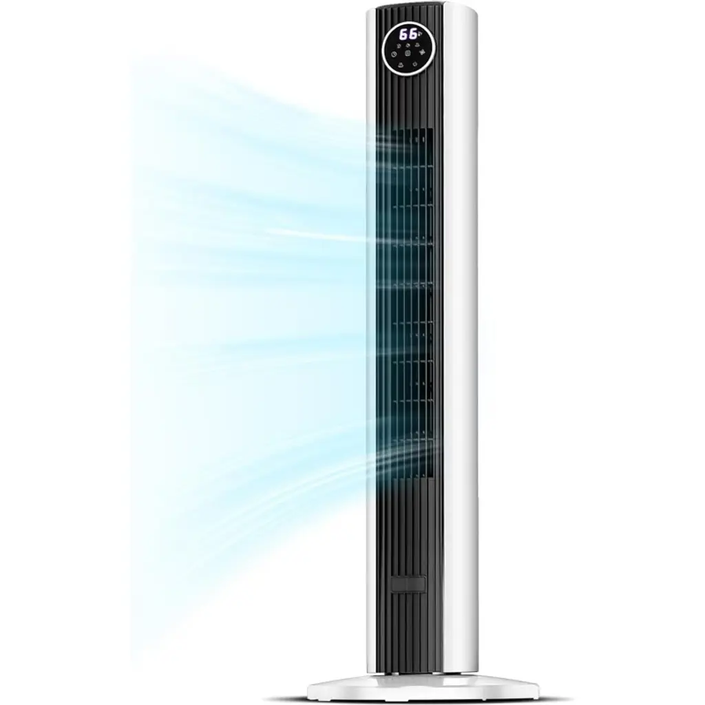 Tower Fan For Bedroom, Quiet Bladeless Floor Fan With 5 Speeds, 3 Modes, 12h Timer, Remote, Led Touch Display, 80° Oscillating, White